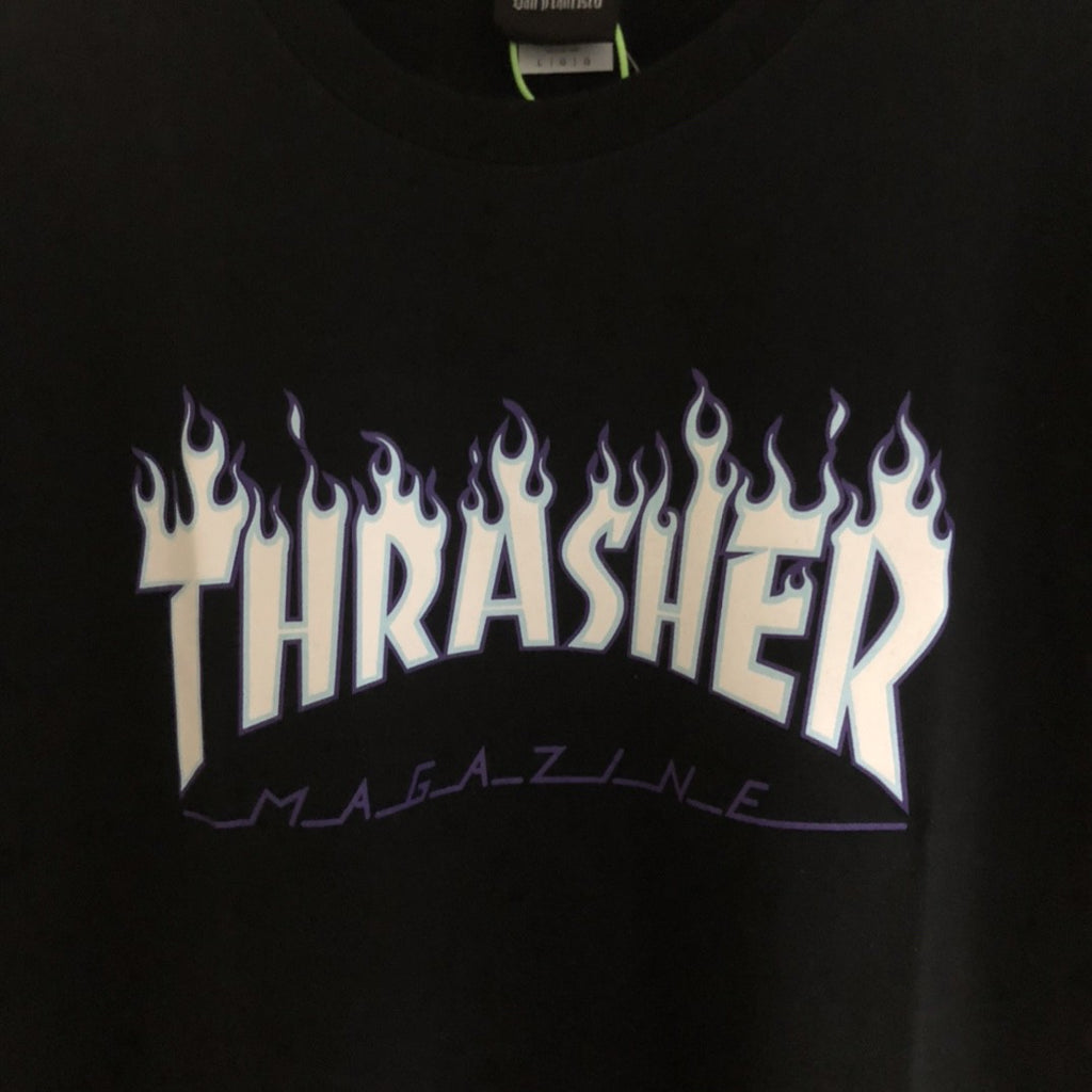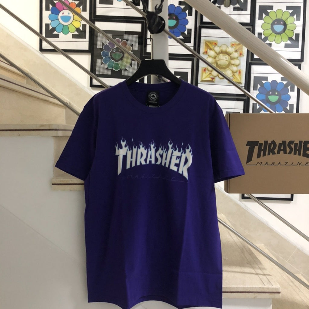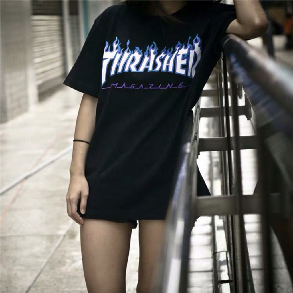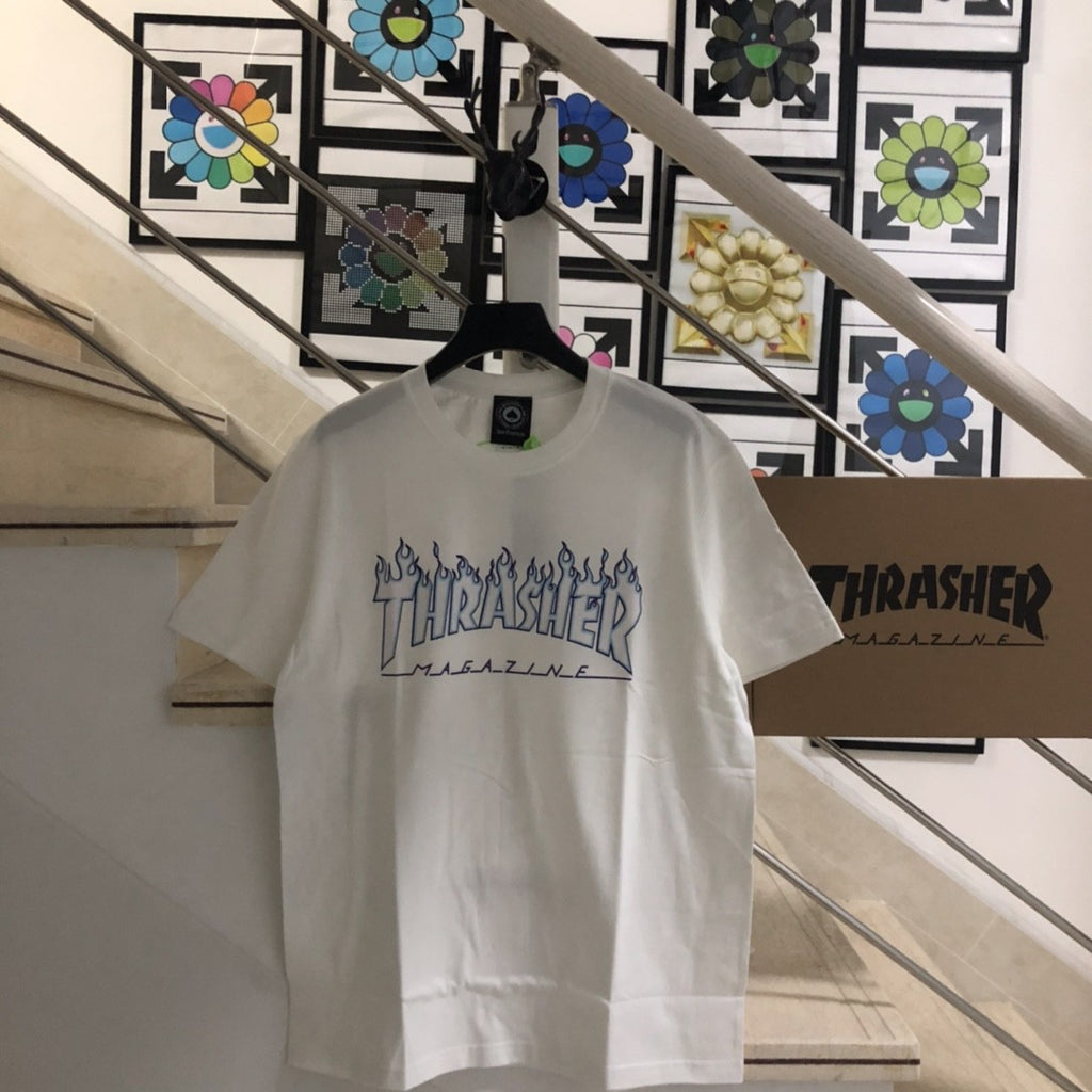 Thrasher T Shirt Ice Blue Flame Loose Short Sleeve