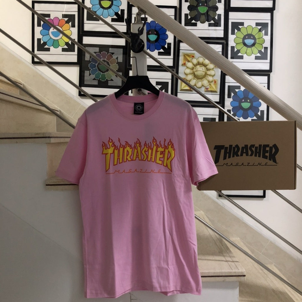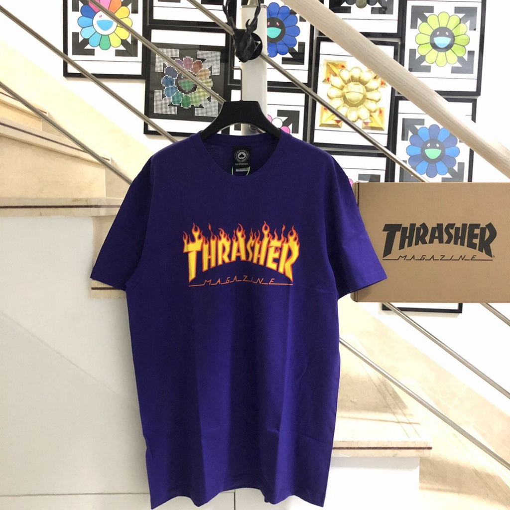 Thrasher T Shirt Thrasher Flame Loose Short Sleeve Fall Winter Couples