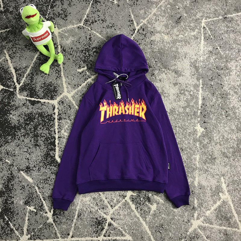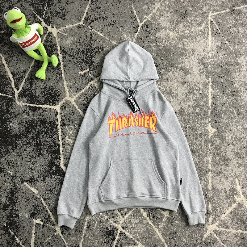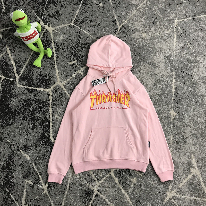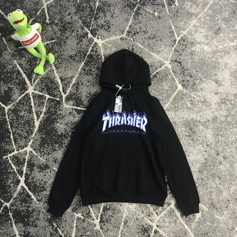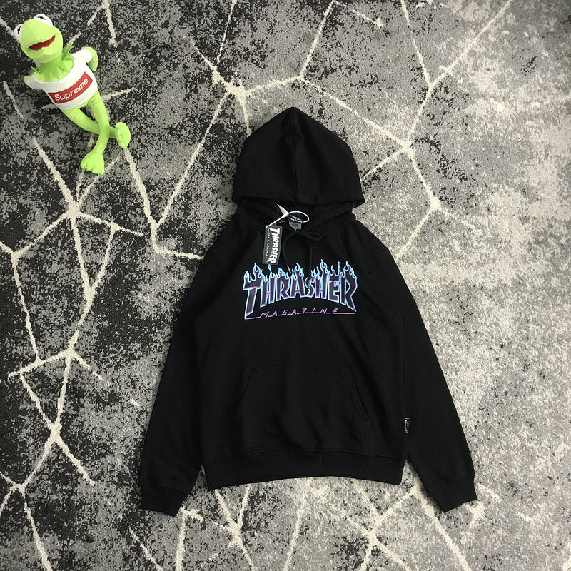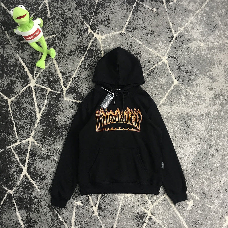 Thrasher T Shirt Autumn Flame Letter Hooded Sweater Cotton Loose Sports