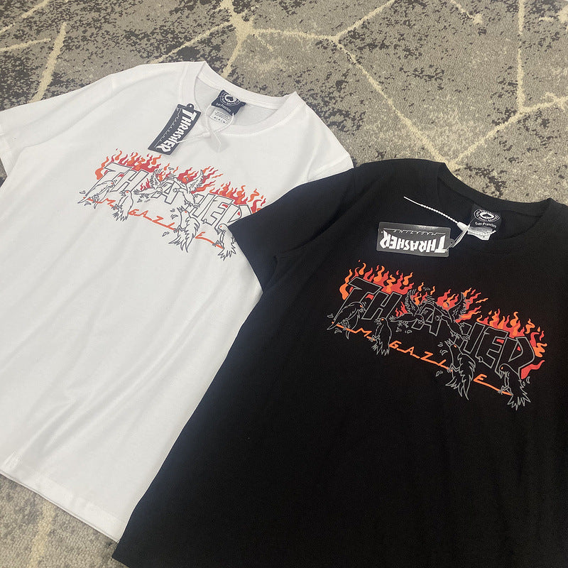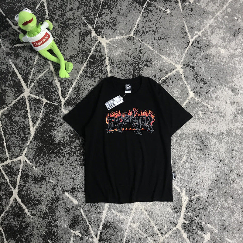 Thrasher T Shirt Summer Flame Loose Couple T-shirt