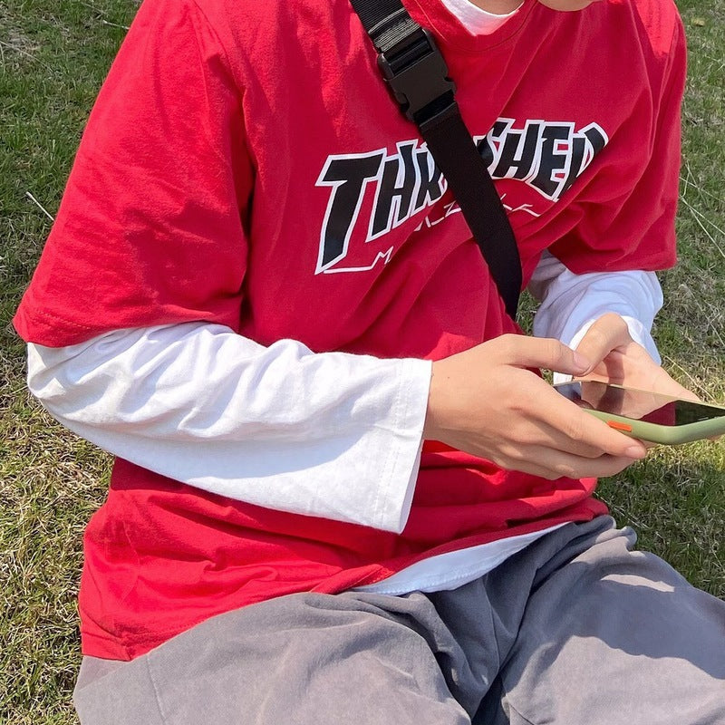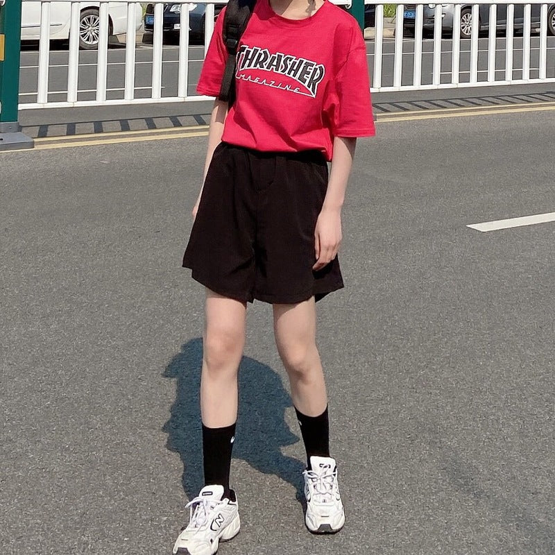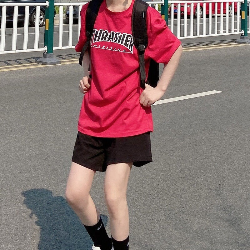 Thrasher T Shirt Summer T-shirt Male Letter Flame Print Pure Cotton Couple