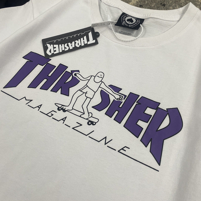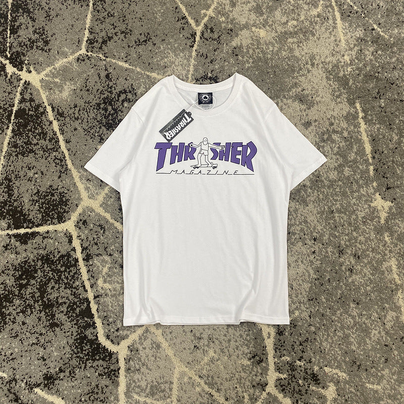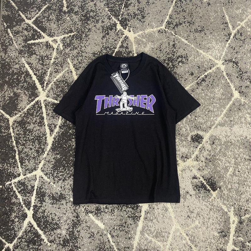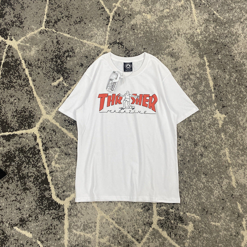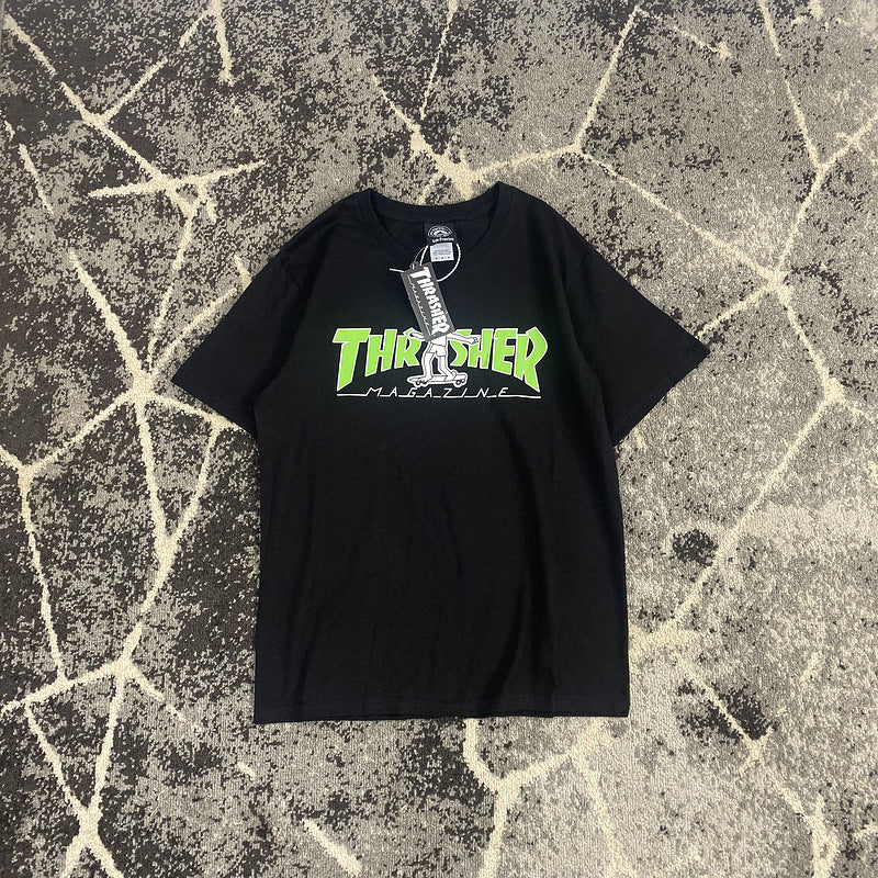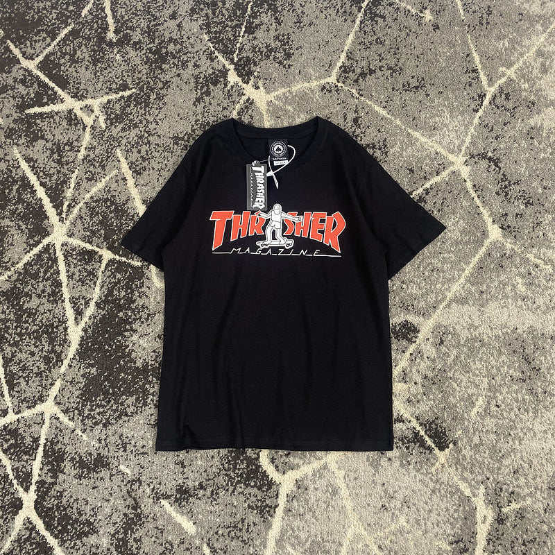 Thrasher T Shirt Summer Flame Skateboard Villain Hip Hop Printed Loose T-shirt