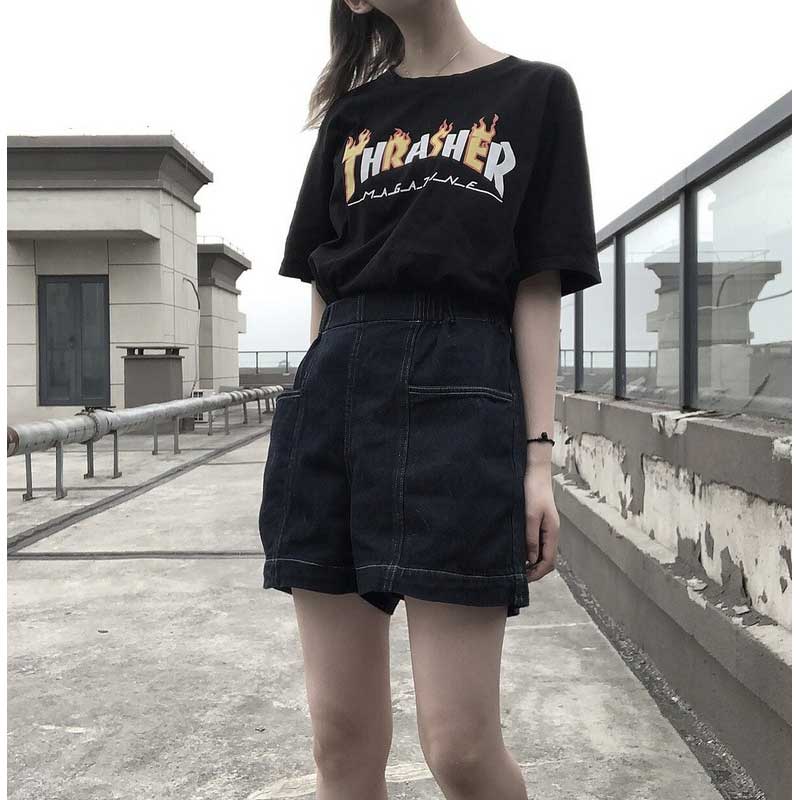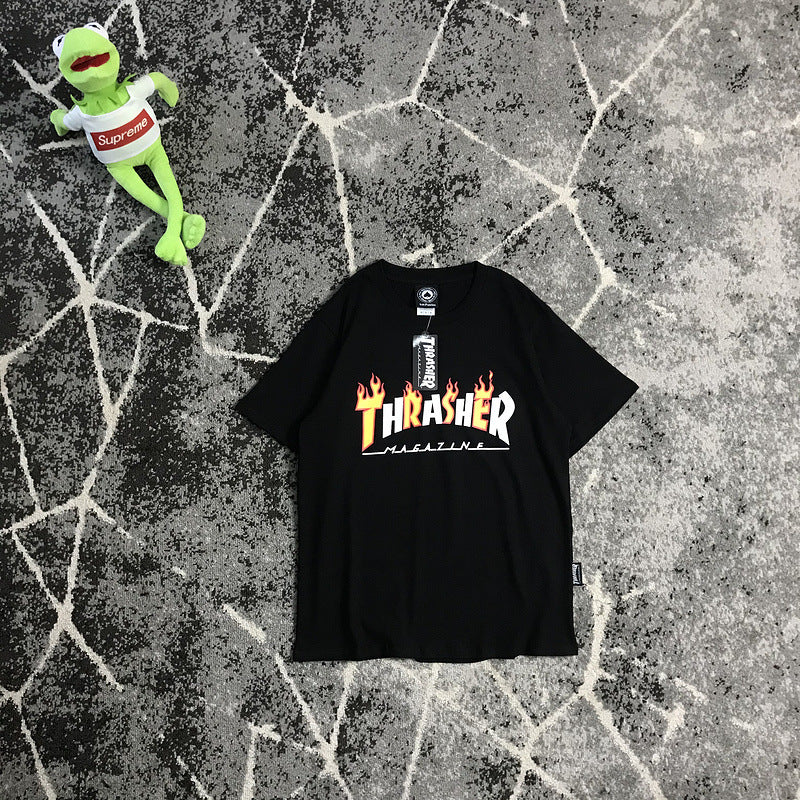 Thrasher T Shirt Summer Skateboard Flame Limited T-shirt Couple