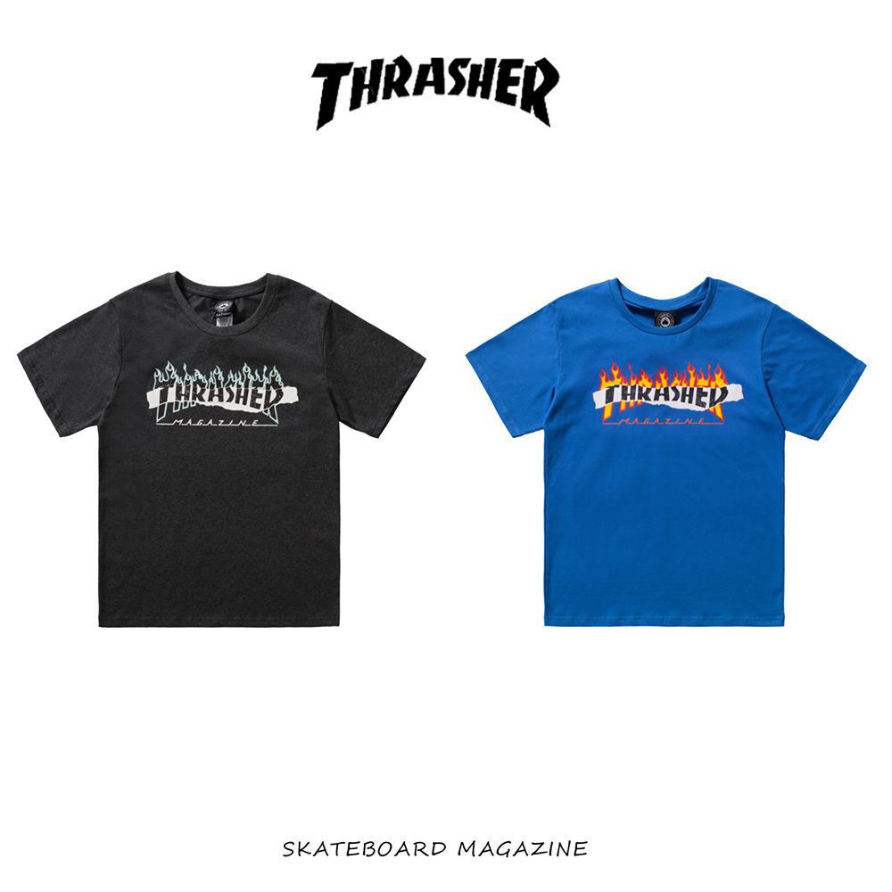 Thrasher T Shirt Flame Color Matching Short Sleeve T-shirt