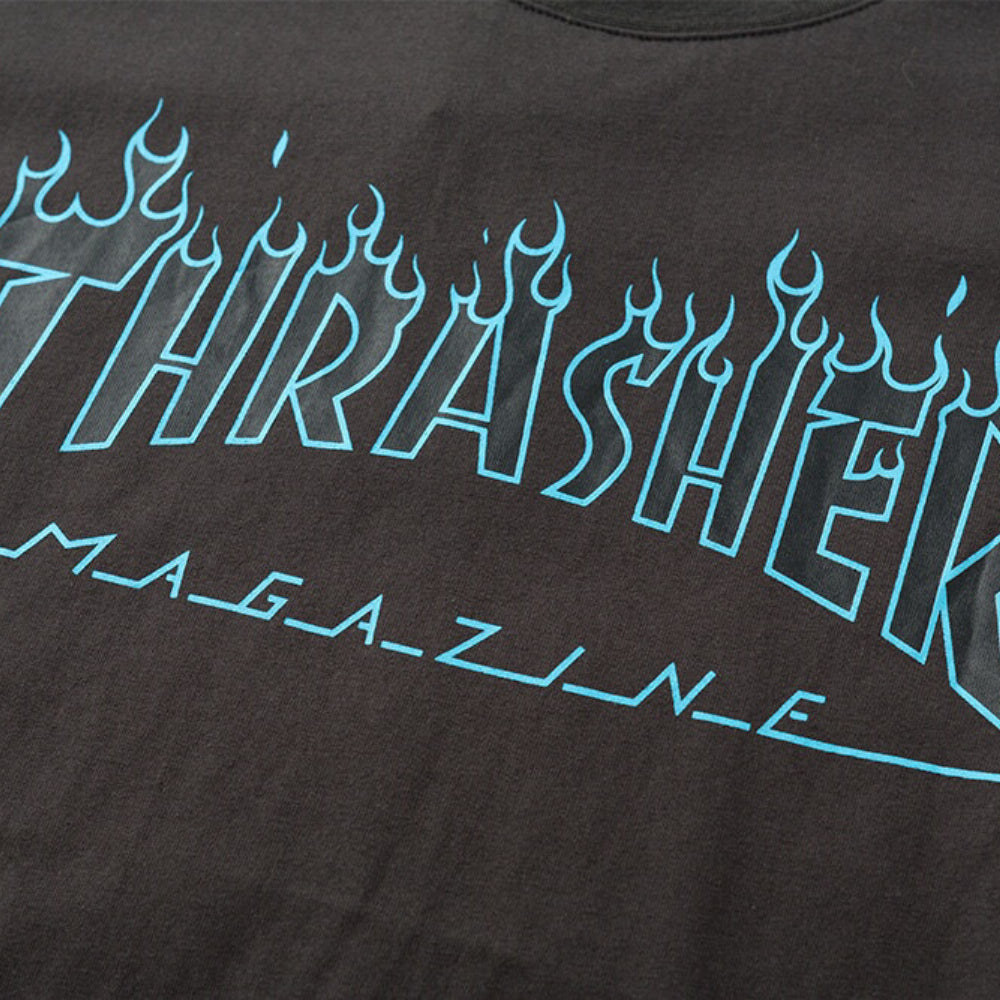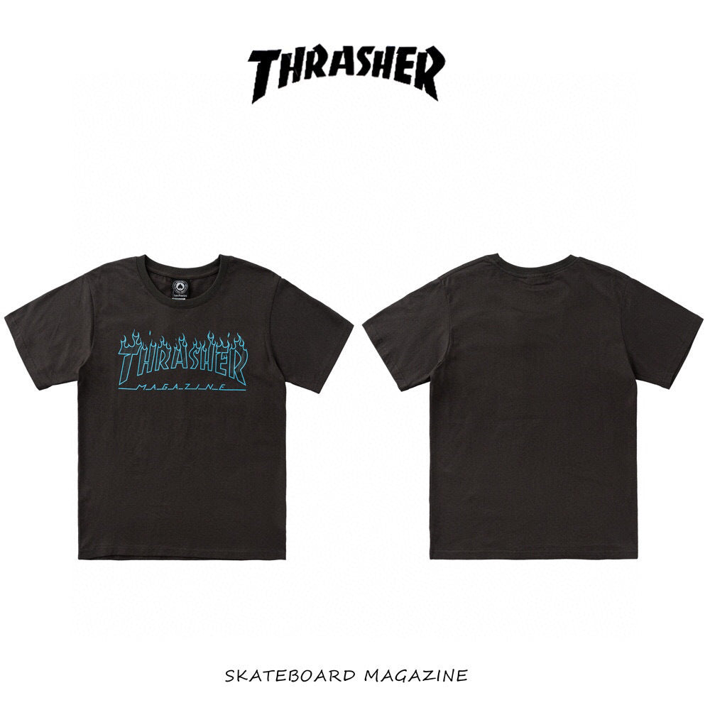Thrasher T Shirt Summer Flame Thrasher Loose Short Sleeve Men's Round Neck Pullover