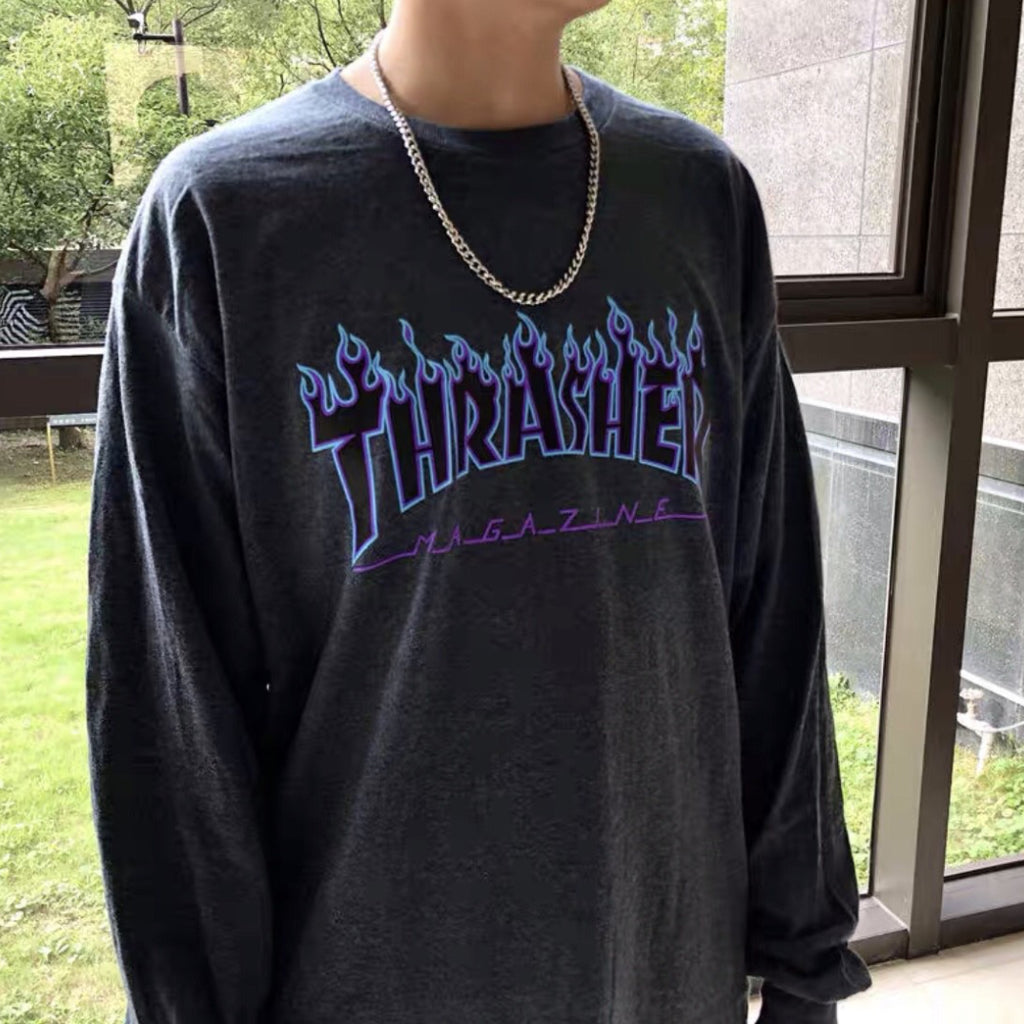 Thrasher Hoodie Loose Hooded Sweater for Men and Women Autumn and Winter