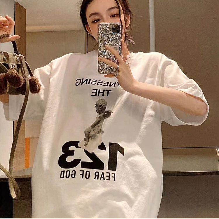 Present Angel T Shirt Foot of God Printed Loose Short Sleeve T-shirt