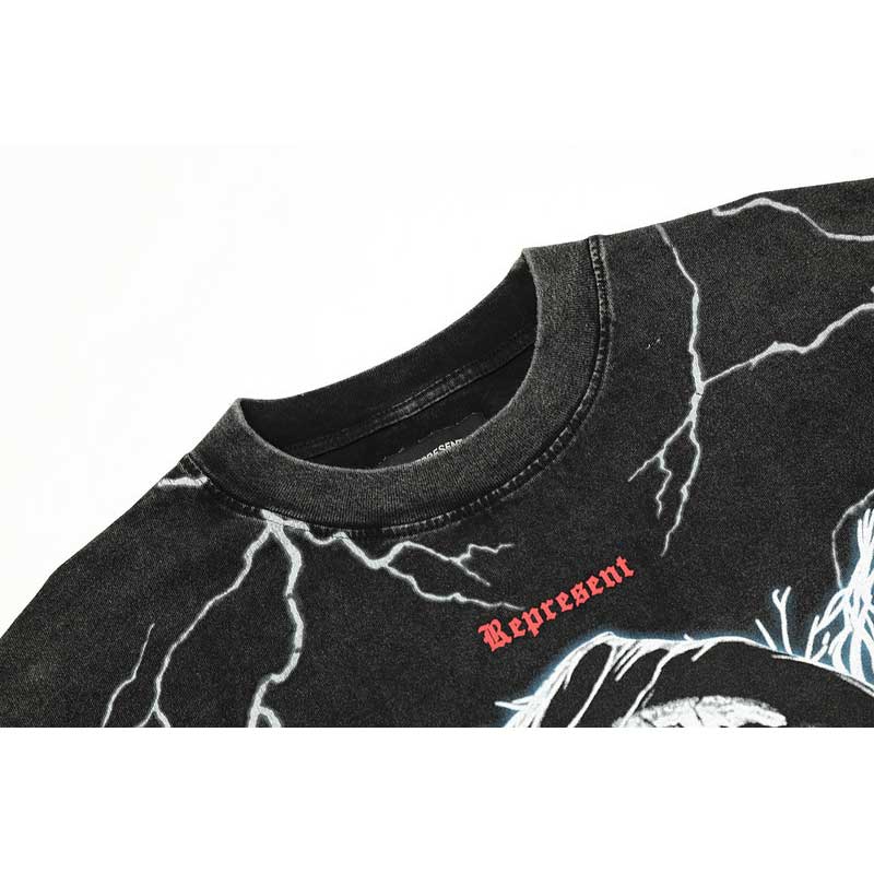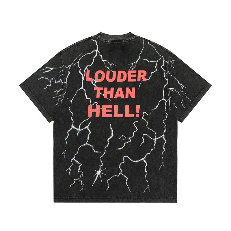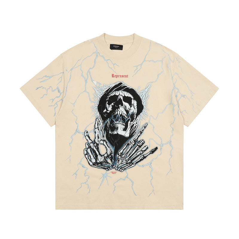 Present T Shirt Present Short Sleeve Men's Vintage Lightning Skull Wash Couple Trendy Brand T-shirt