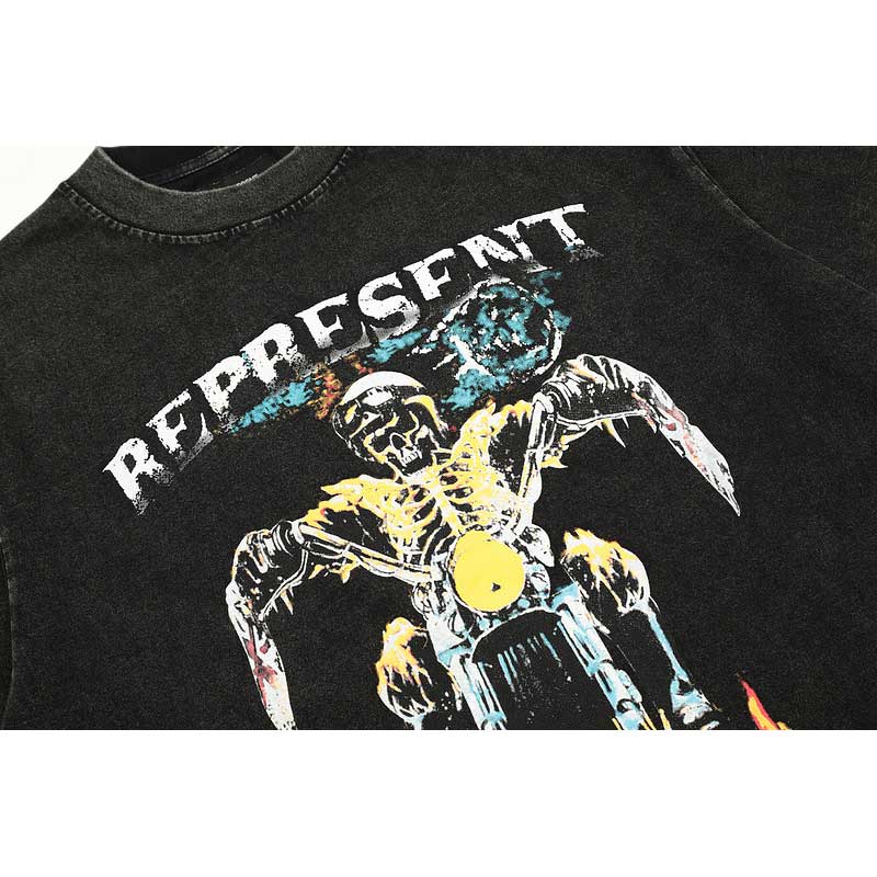 Present T Shirt Flame Motorcycle Skull Distressed Cotton T-shirt