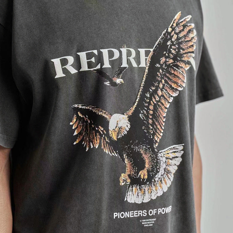 Present T Shirt Eagle Print Distressed Loose Hip Hop round Neck Couple