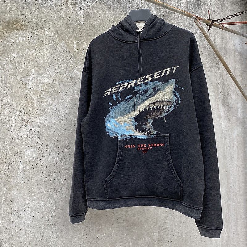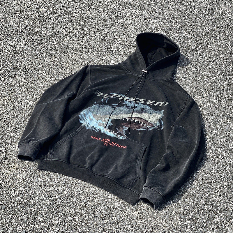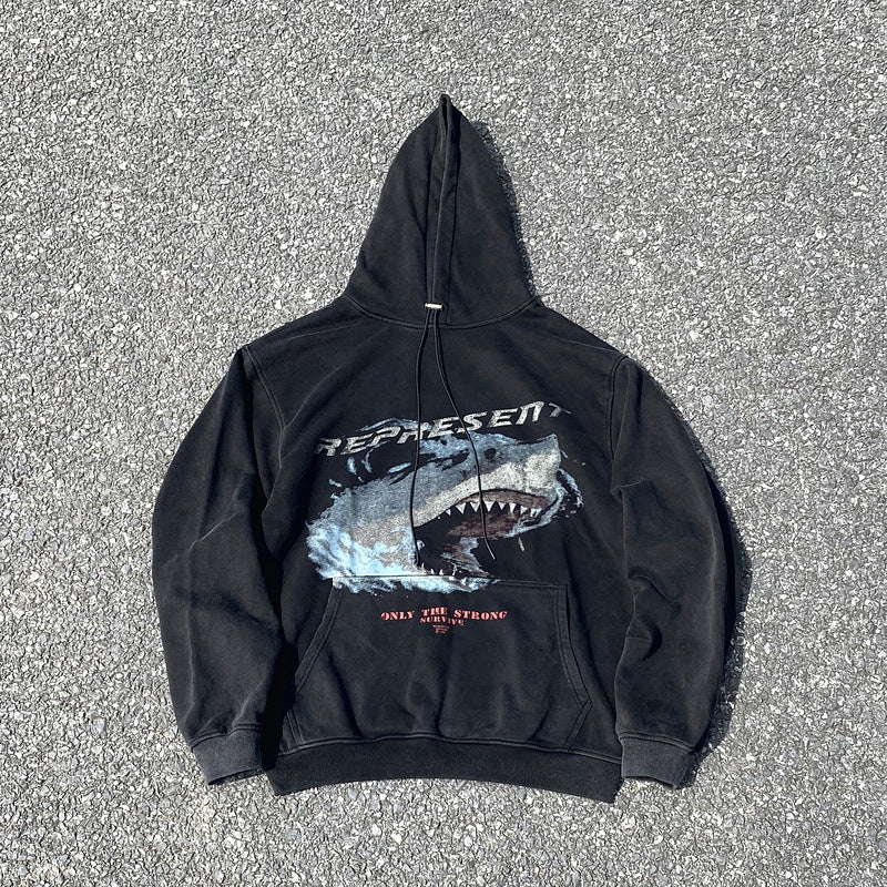 Present Hoodie Big White Shark Limited Retro Distressed Loose Hooded Sweater Heavy Weight