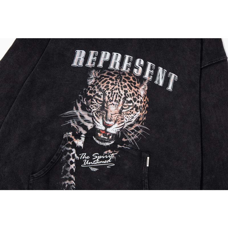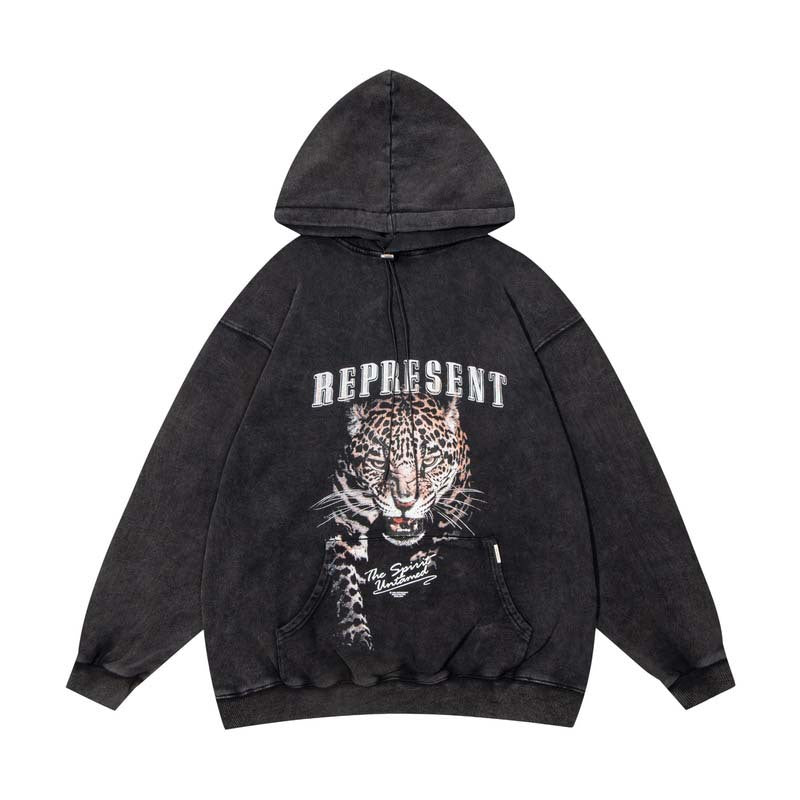 Represent Hoodie Correct Version Represent Cheetah Vintage Print Distressed Casual Hooded Hoody Men and Women Winter