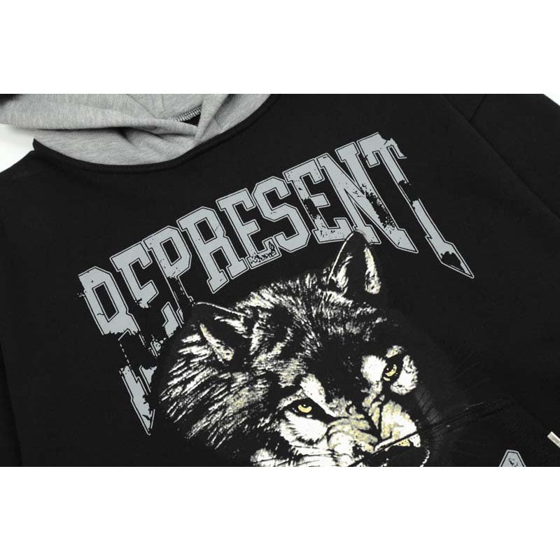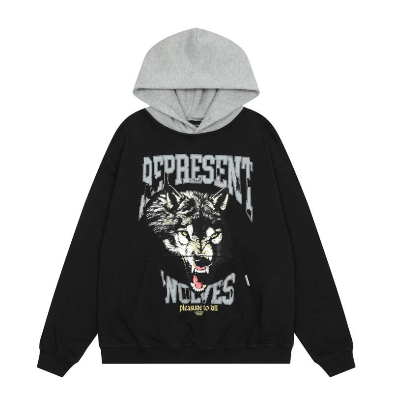 Present Hoodie Wolf Head Printed Patchwork Hoodie