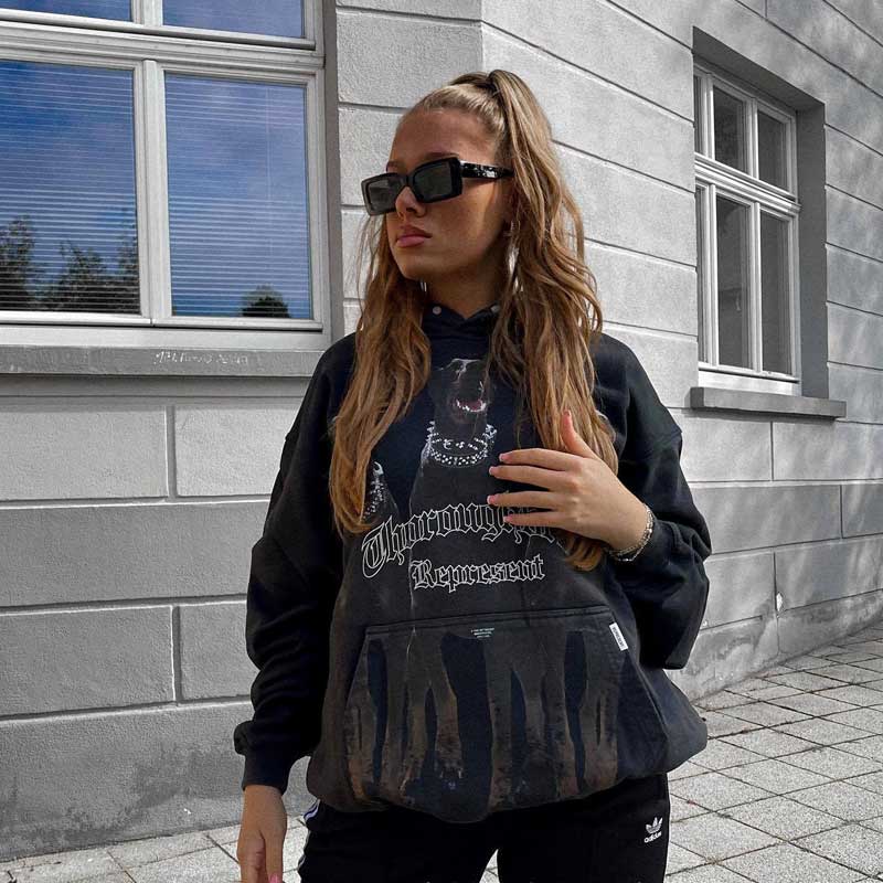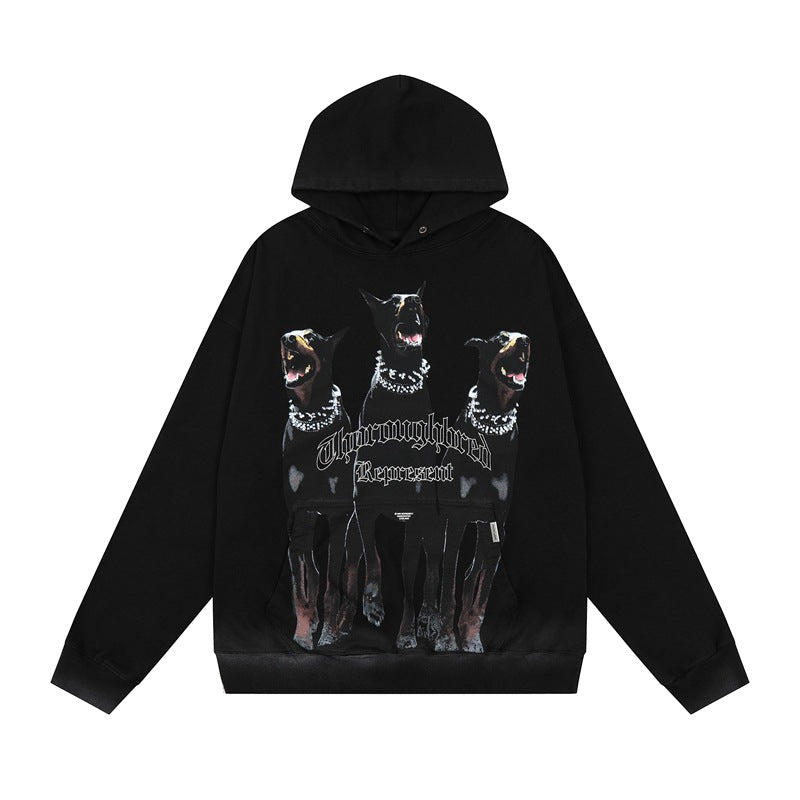 Present Hoodie Doberman Pinscher Printed Hoodie Distressed Loose