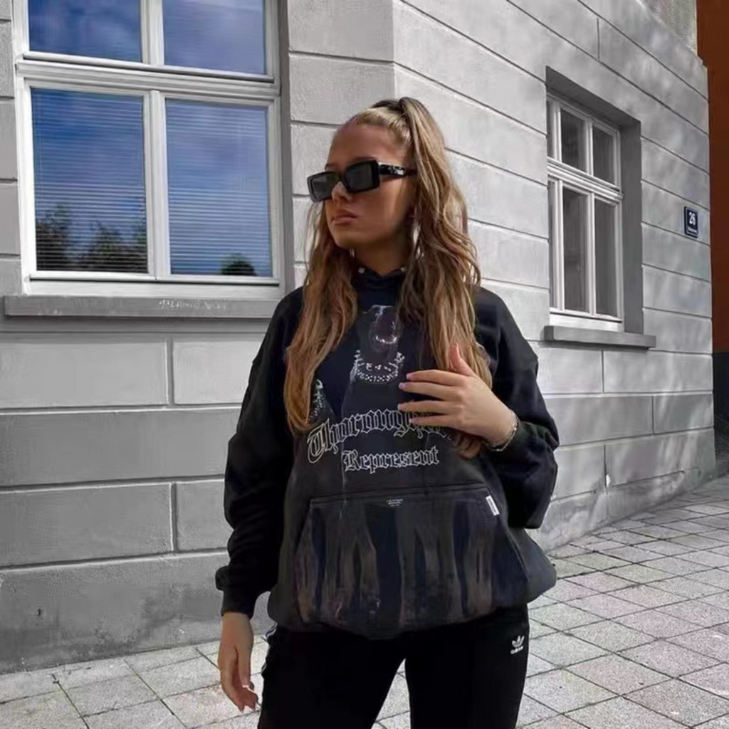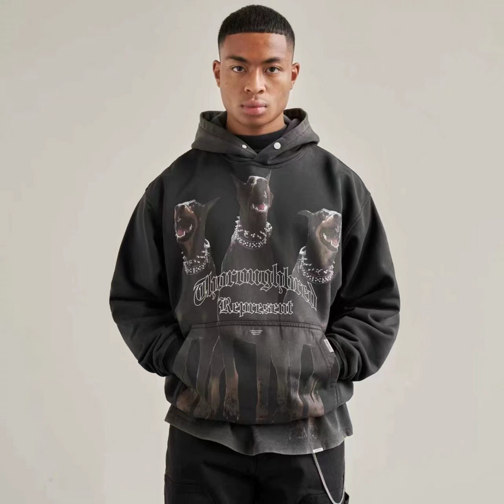 Present Hoodie Doberman Pinscher Printed Hoodie Retro Heavy Loose