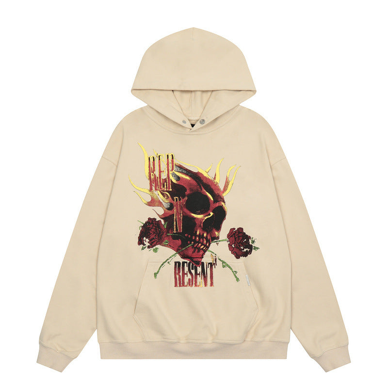 Present Hoodie Rose Skull Distressed Hooded Sweater for Men