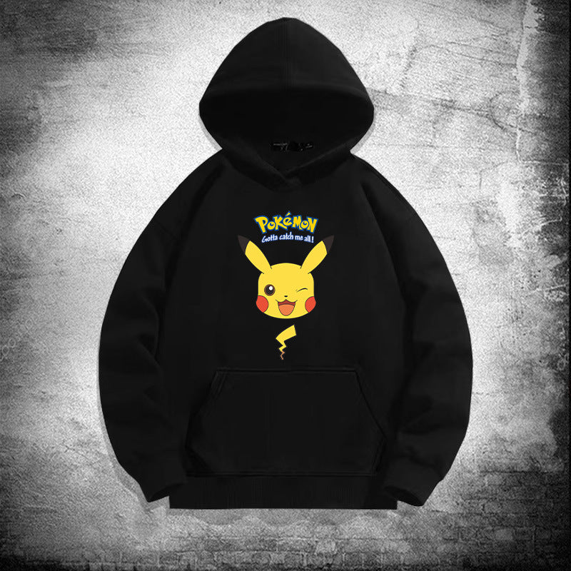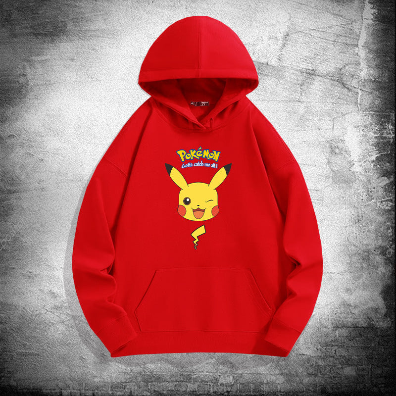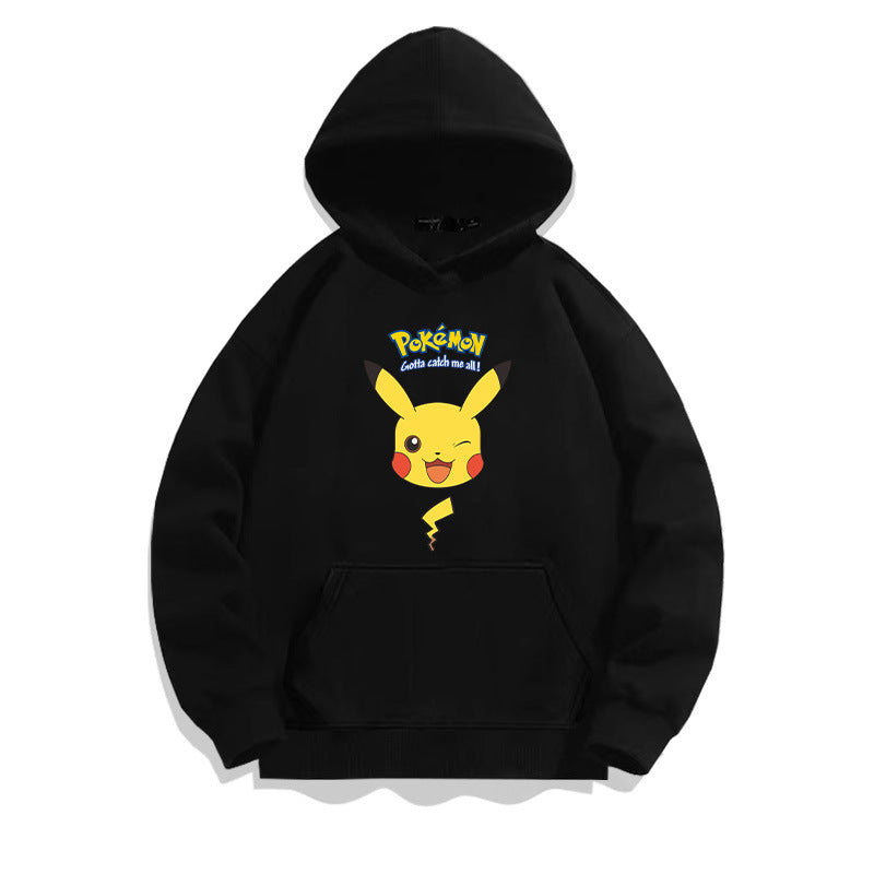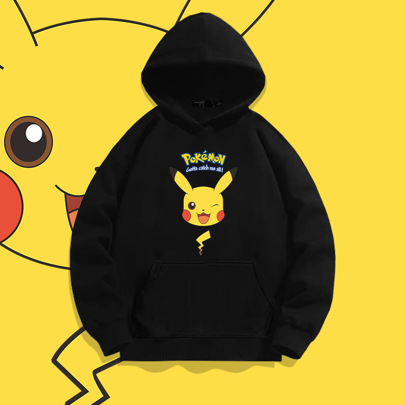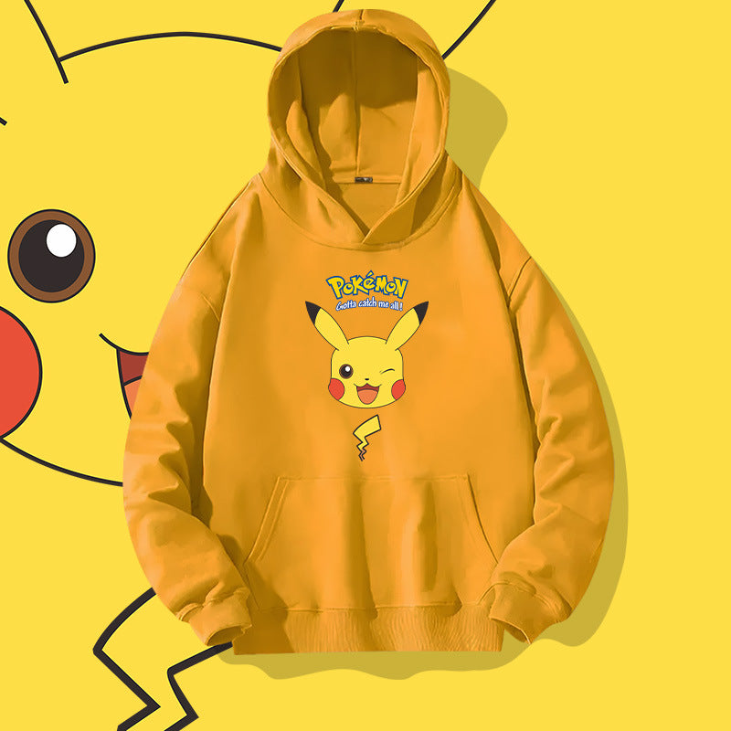Men and Women Pokemon Pikachu Hoodie Loose Shoulder Long Sleeve Top Clothes
