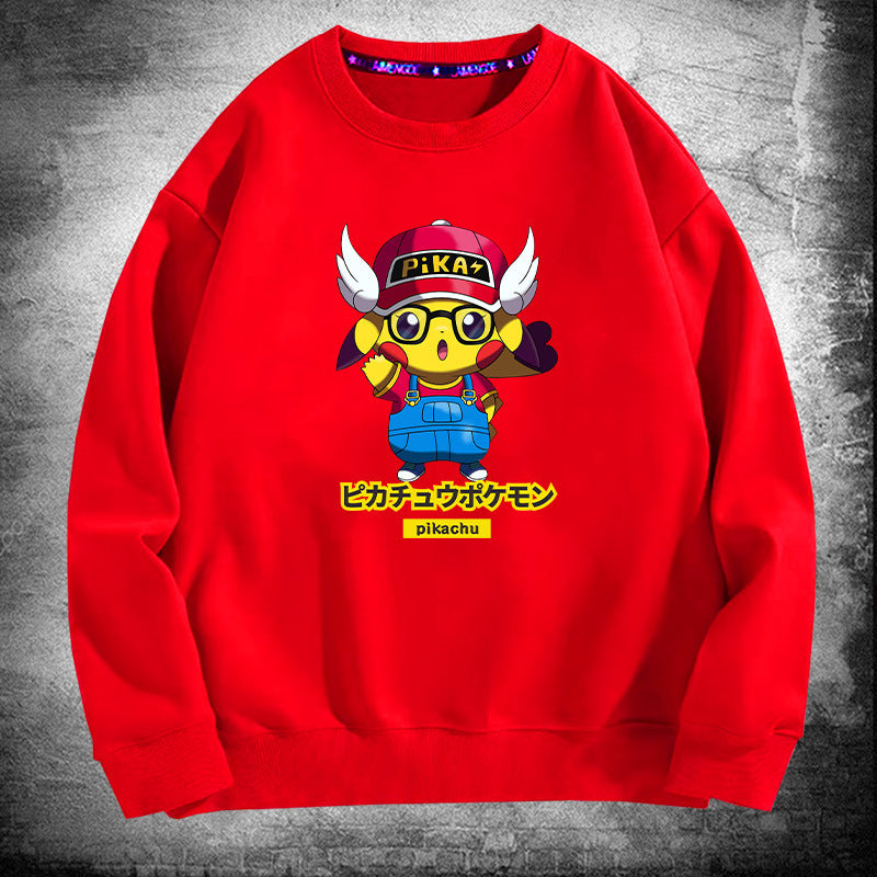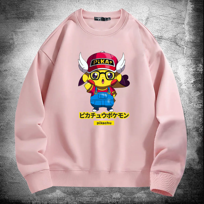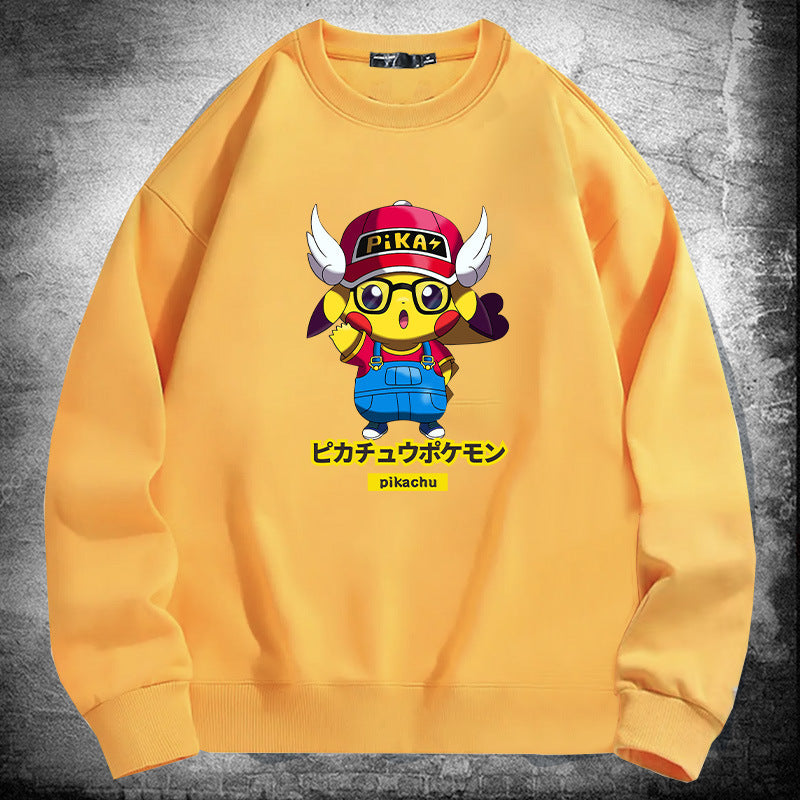 Men and Women Pokemon Pikachu Hoodie Pikachu round Guard Crew Neck Pullover Sweatshirt