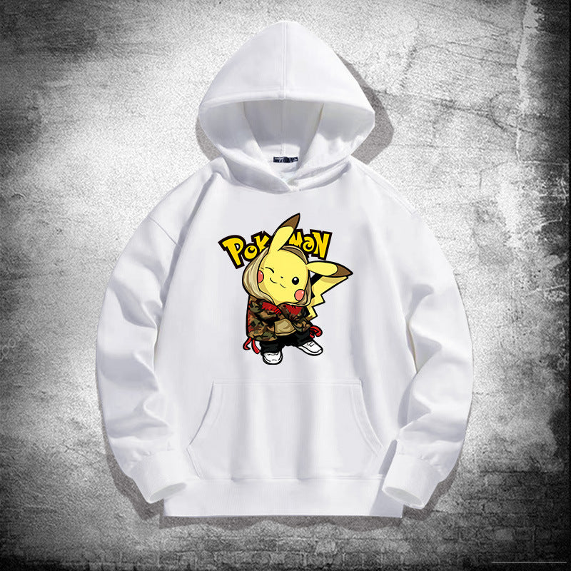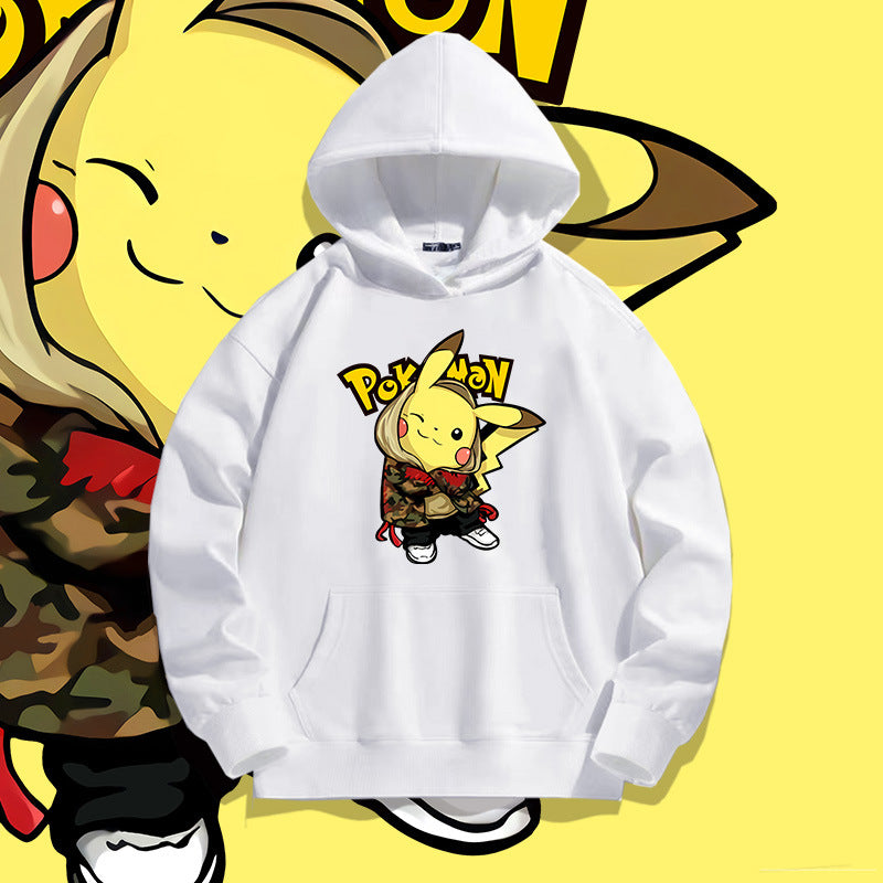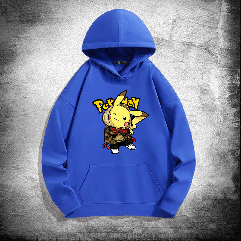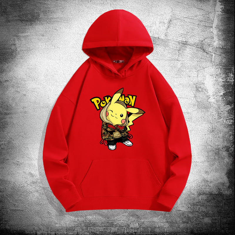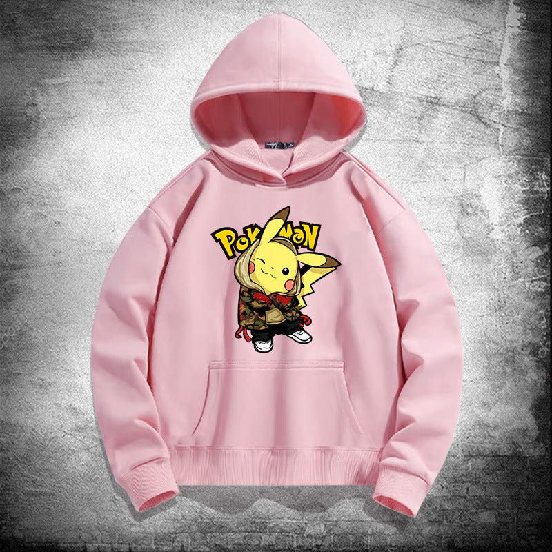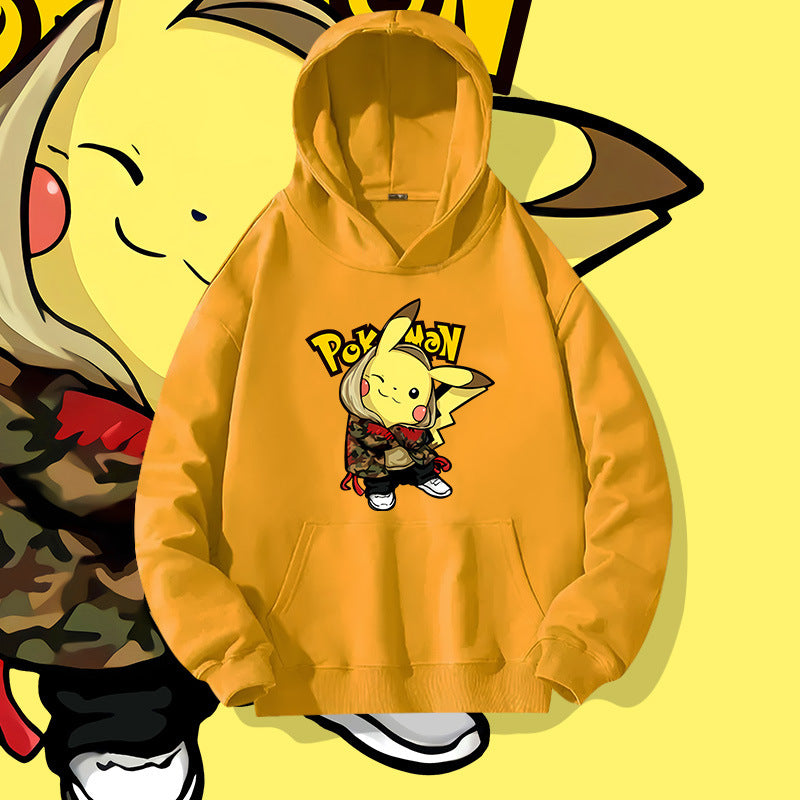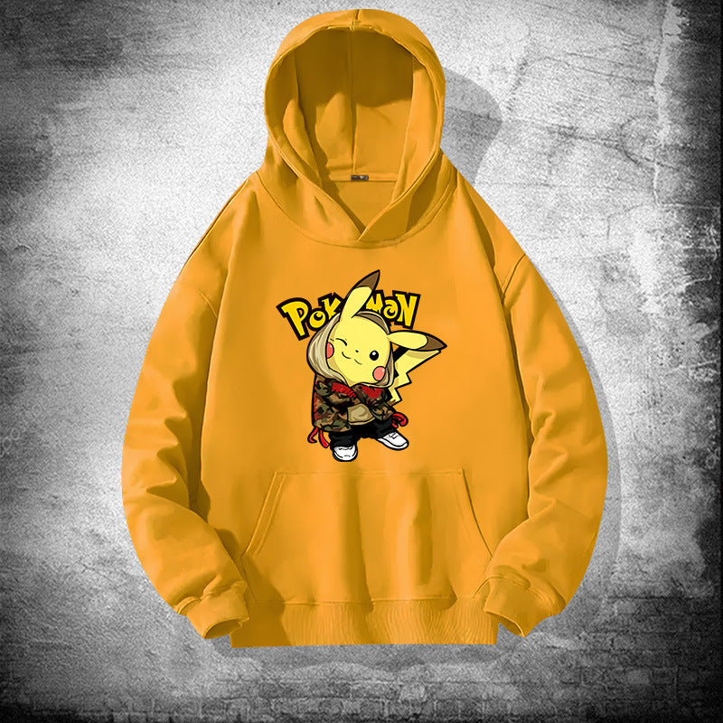 Men and Women Pokemon Pikachu Hoodie Loose Shoulder Long Sleeve Top