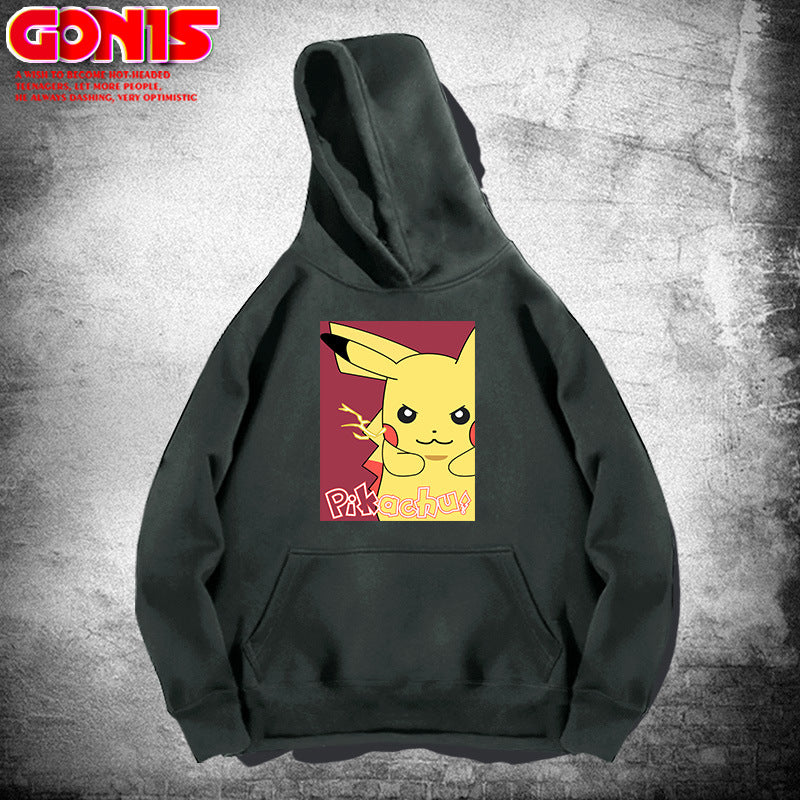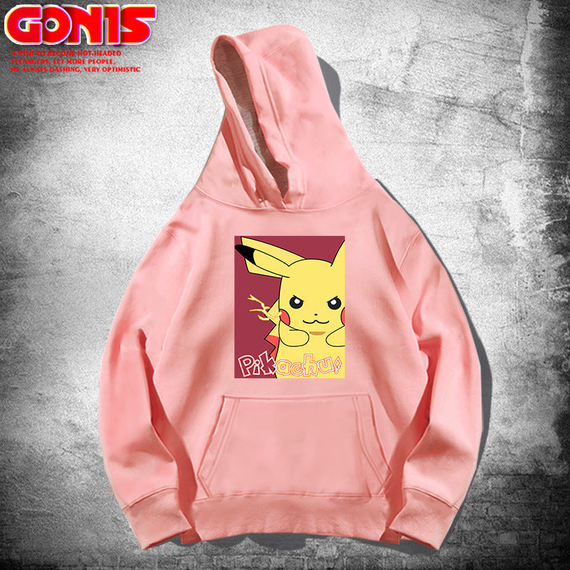 Men and Women Pokemon Pikachu Hoodie Anime Loose Shoulder Hoodie Long Sleeve Coat