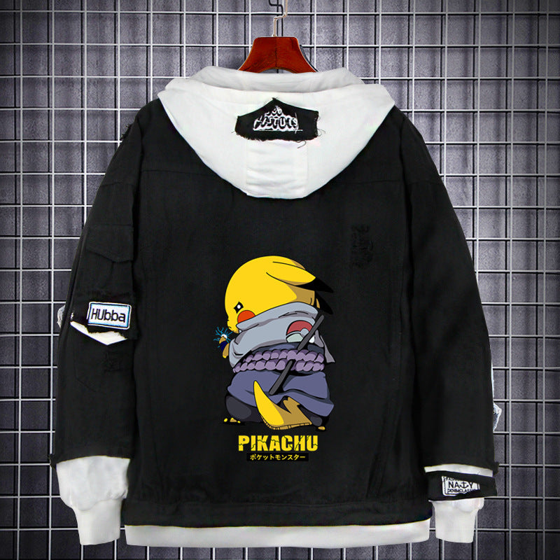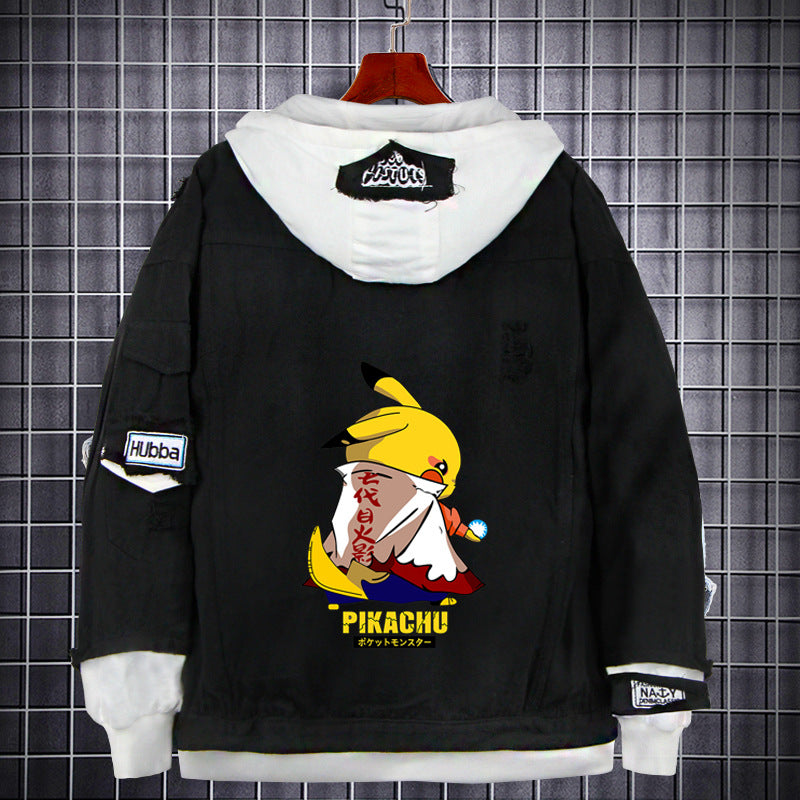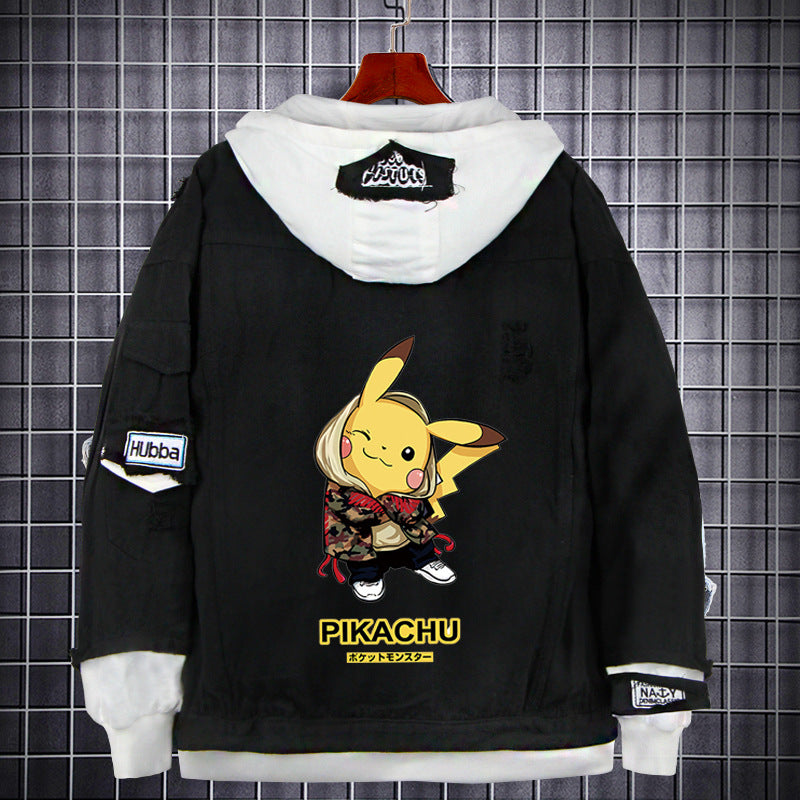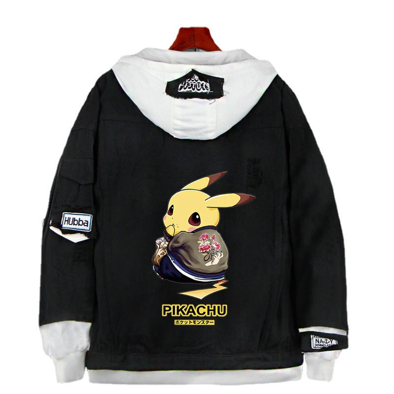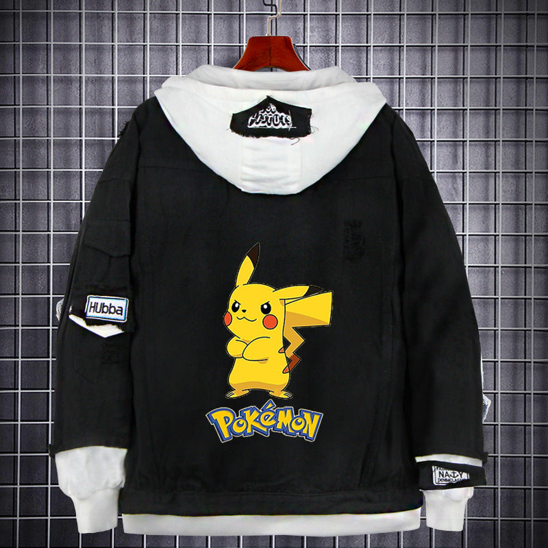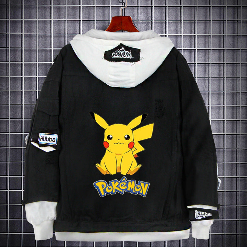 Men and Women Pokemon Pikachu Coat Pet Elf Pikachu Anime Denim Hoodie