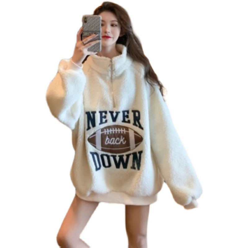 Harvard Sweatshirt Embroidered Lamb Wool Sweatshirt