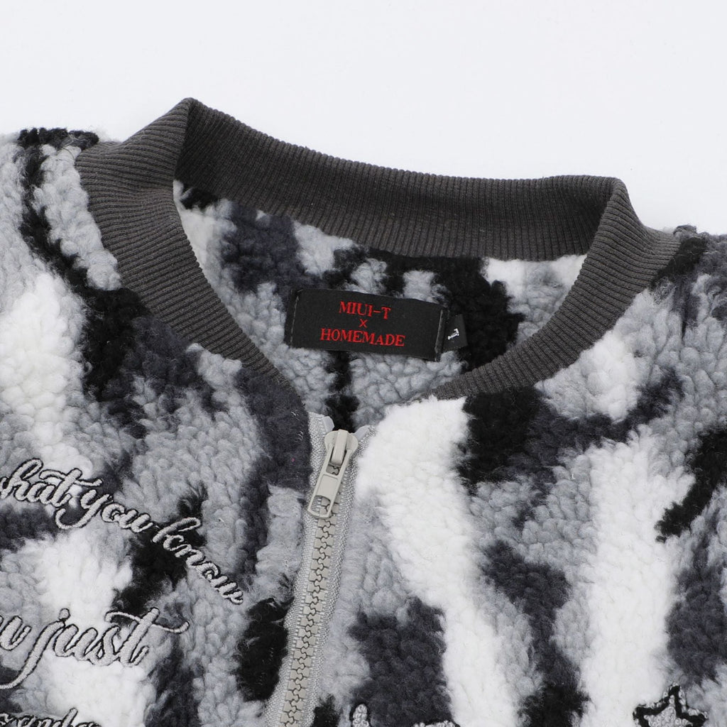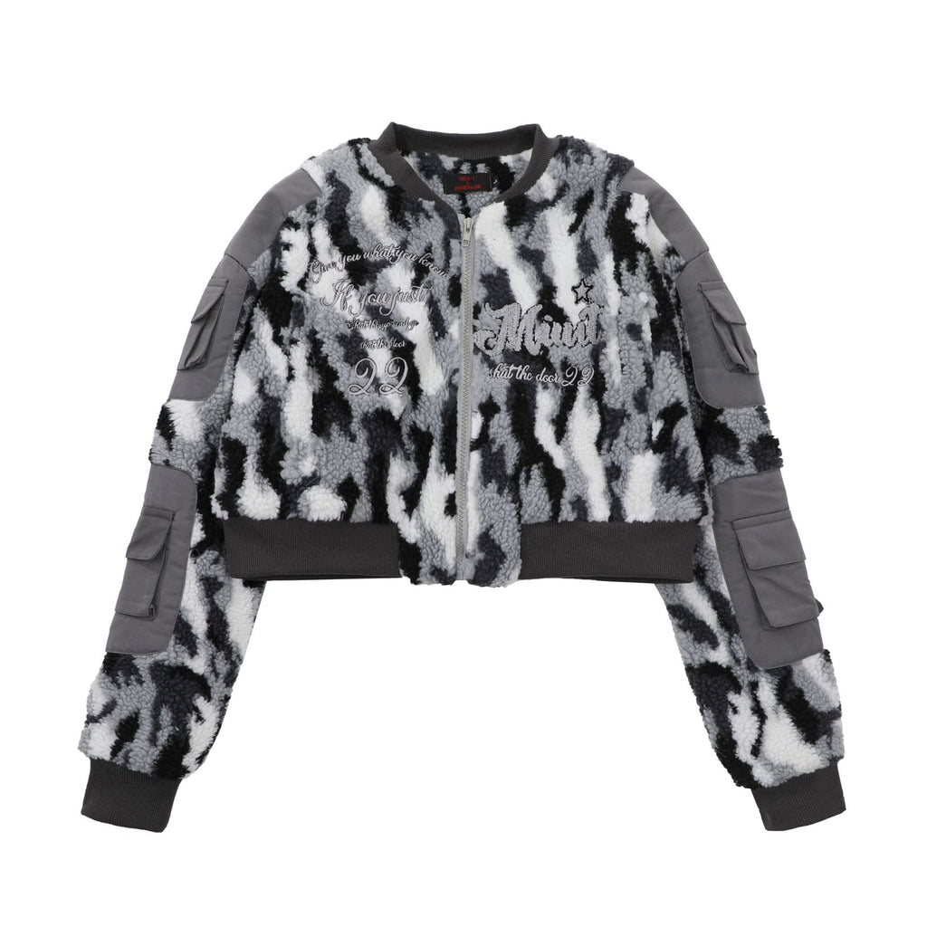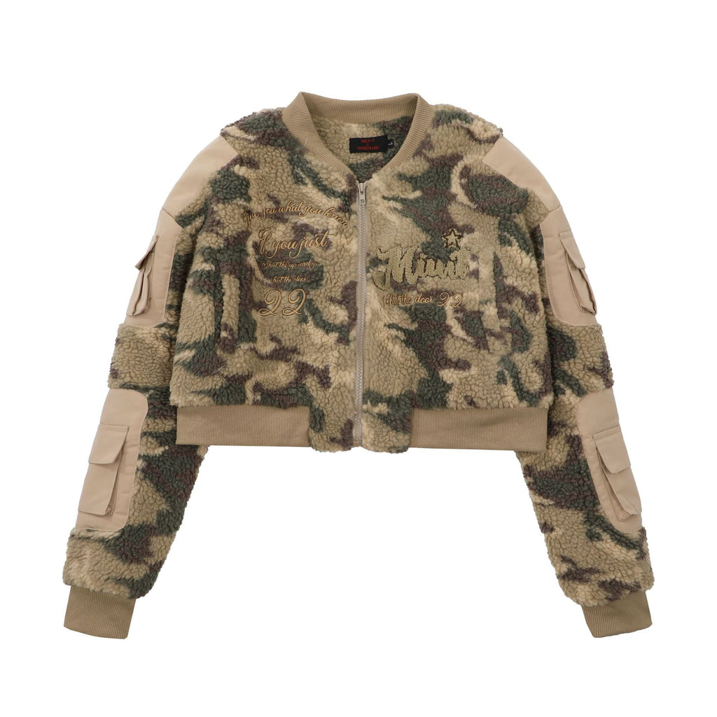 Nina Parker Camo Jacket Camouflage Lamb Wool Short Baseball Jacket