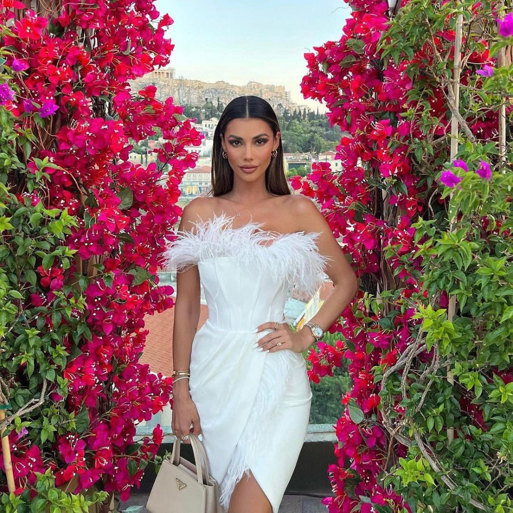 Mariah Carey Dress Sleeveless Dress Tube Top Slim Fit Slit Pleated Feather Dress