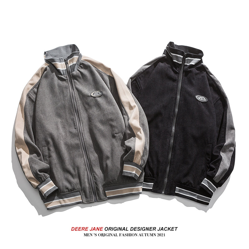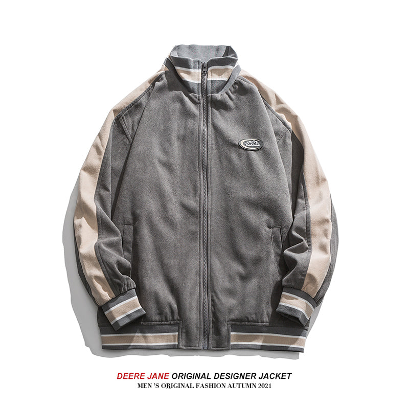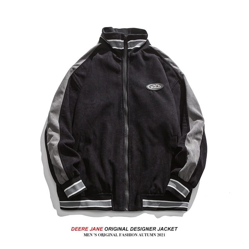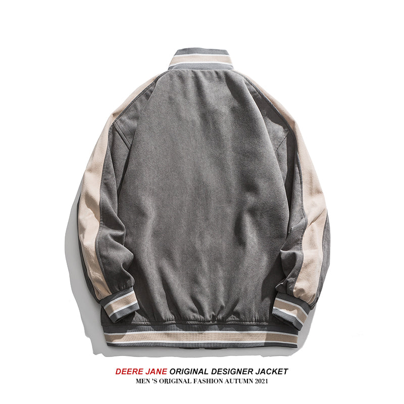 Men Baseball Jacket Spring Colorblock Baseball Uniform Loose All-Matching Jacket