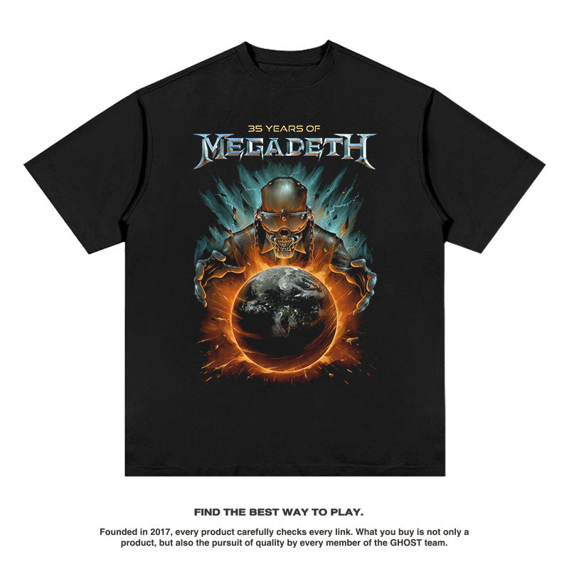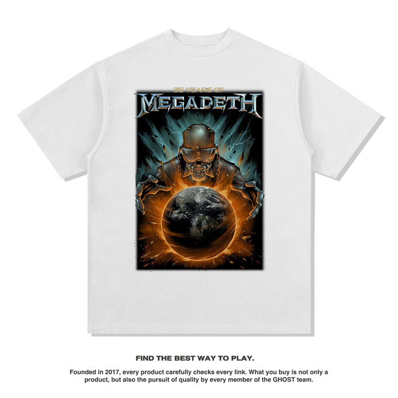 Rock Band T Shirt Washed Short Sleeve T-shirt round Neck