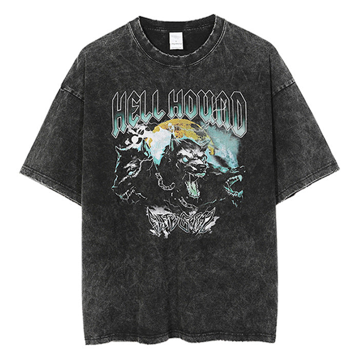 Rock Band T Shirt Washed Distressed Short Sleeve Hip Hop T-shirt Loose High Street