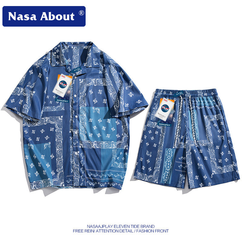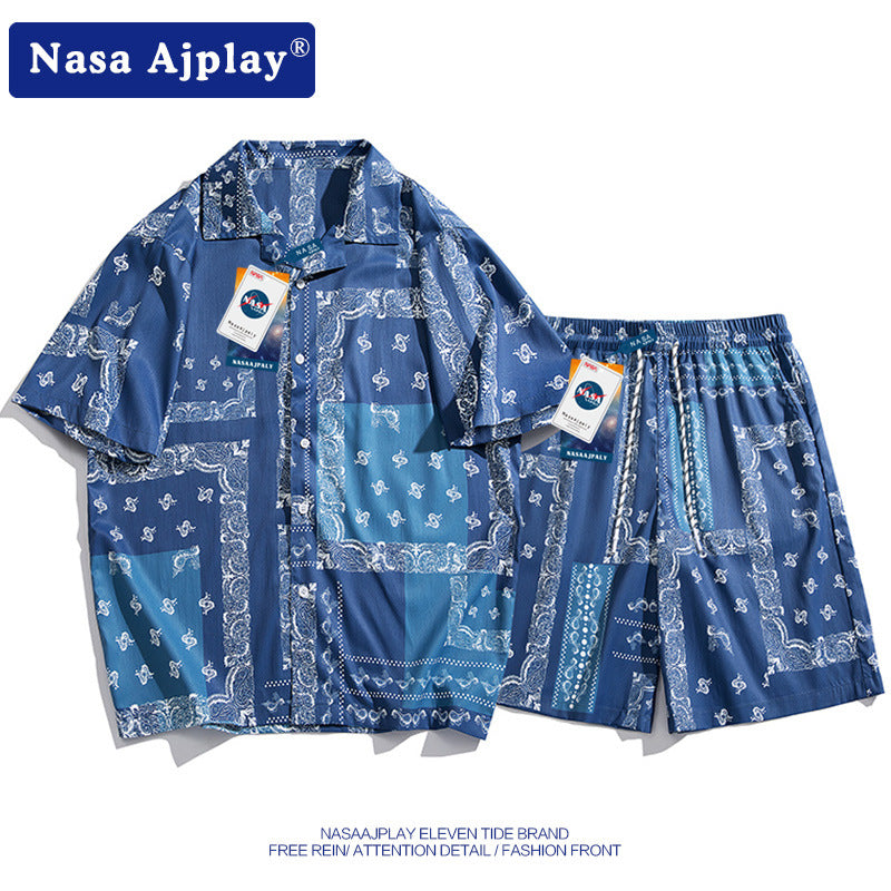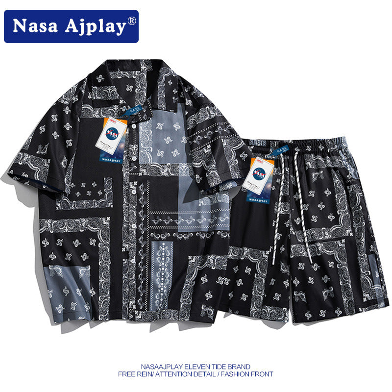 Nasa Tracksuit Short-Sleeved Shorts Suit Male Student Ruffle Handsome Casual