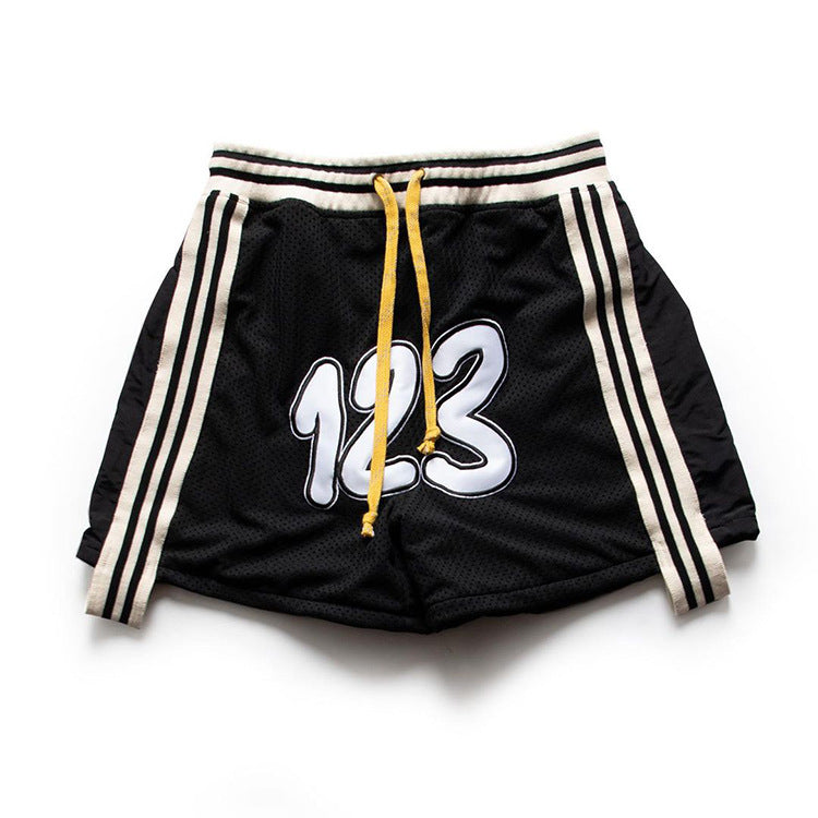Rrr123 Shorts Drawstring Sports Shorts 123 Embroidered Mesh Breathable Shorts