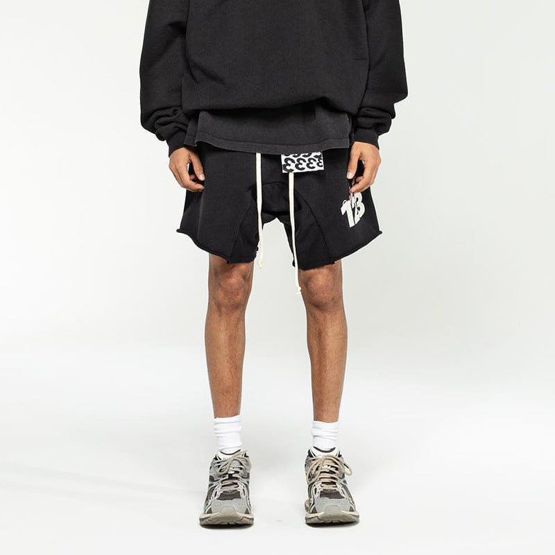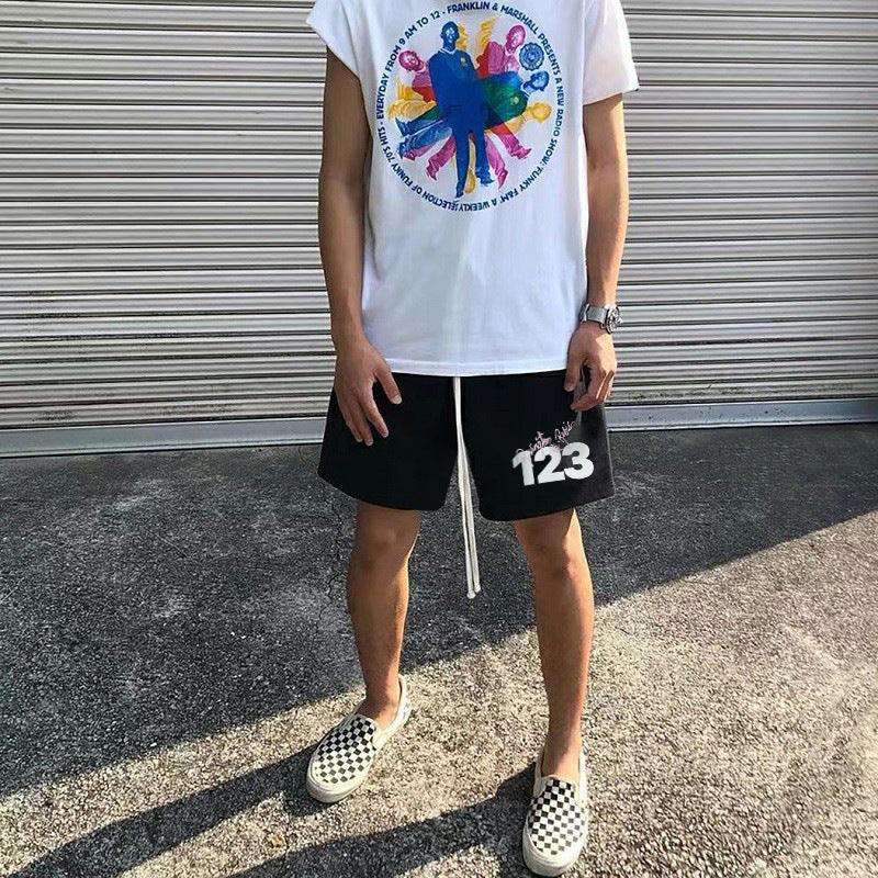 Rrr123 Shorts Summer Vintage Print Drawstring Loose Cotton Sports Shorts