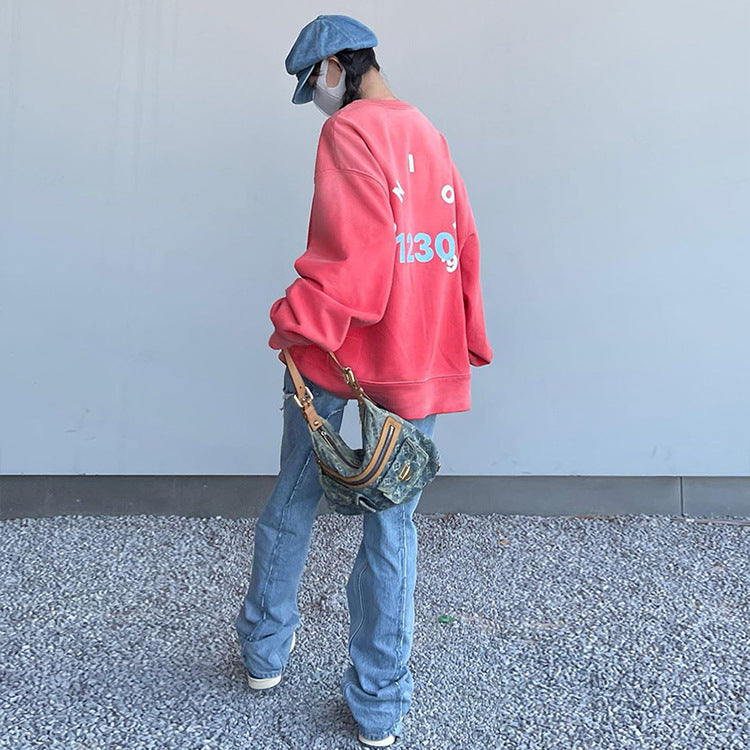 Rrr123 Sweatshirt Rivington ROI Rebis Rrr123 Washed Distressed Loose round Neck Sweater