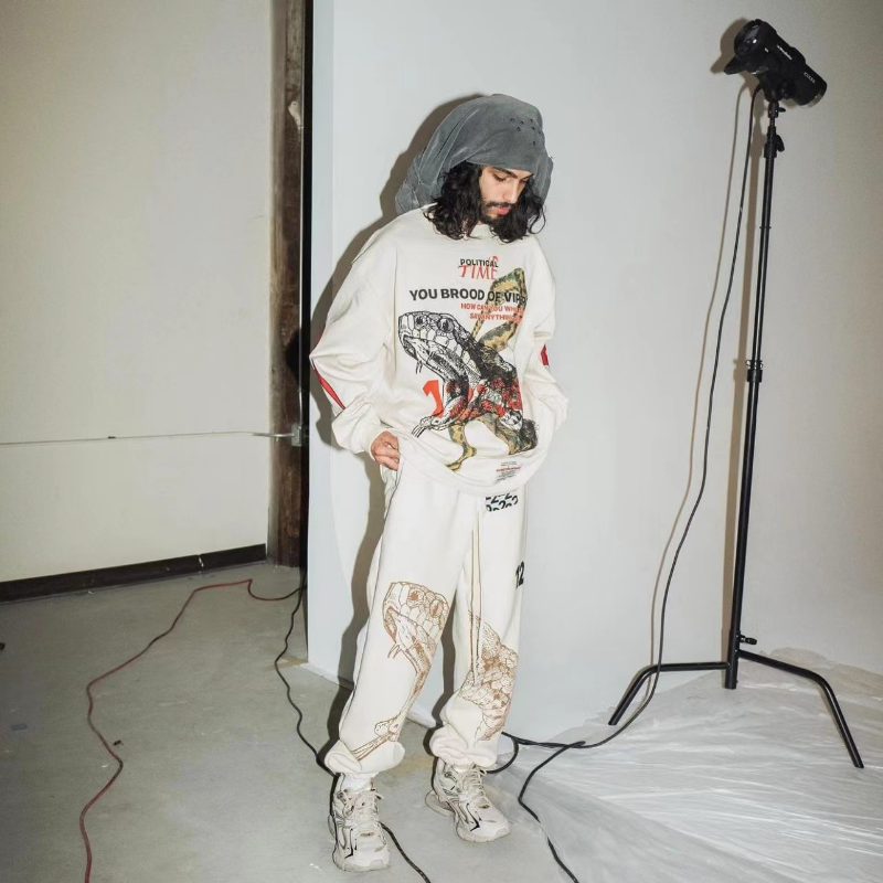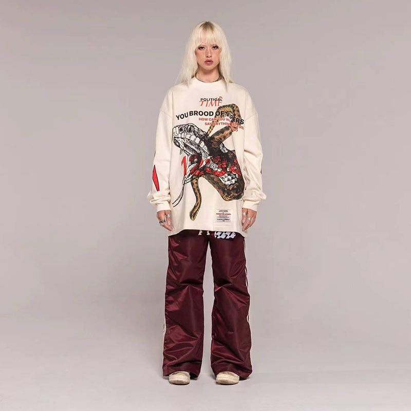 Rrr123 Sweatshirt Snake Puff Print Vintage Embroidery Loose