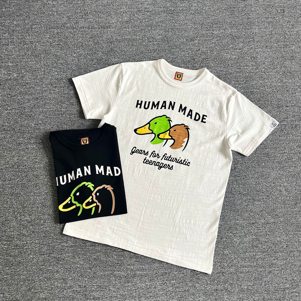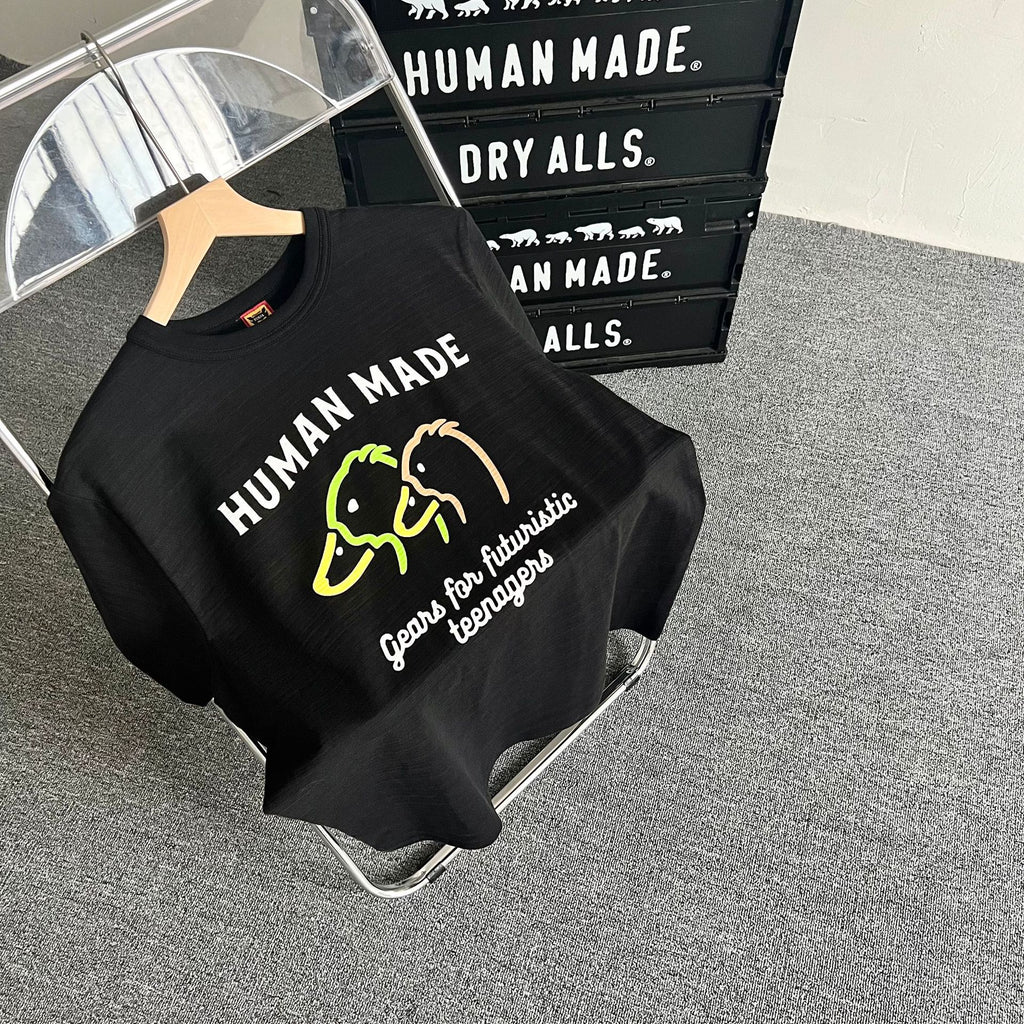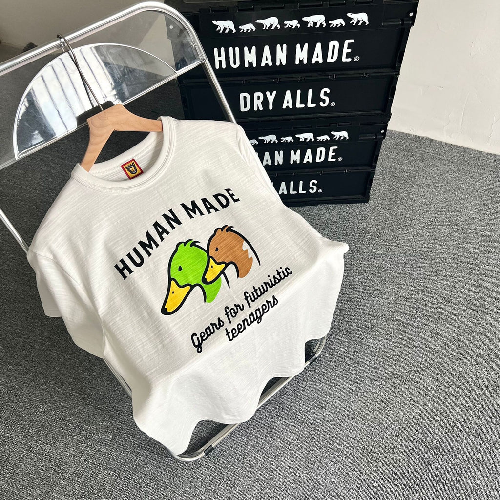 Human Made T-Shirt Green Duck Slub Cotton Men and Women Loose Couple T-shirt