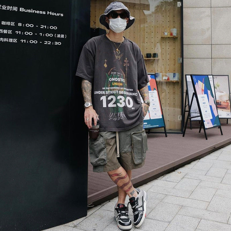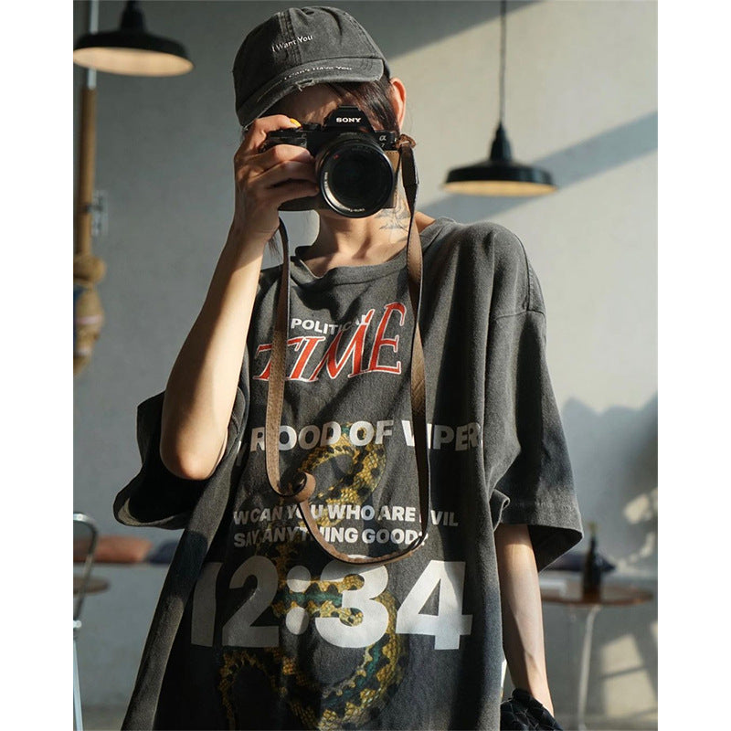 Rrr123 T-Shirt Vintage Distressed Fog Loose round Neck T-shirt