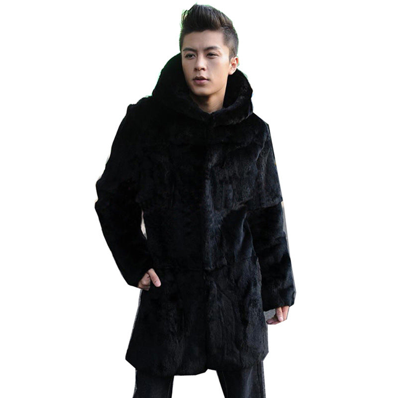 Beaver Coat Men's Fur Coat Hooded Mid-Length Large Size Casual