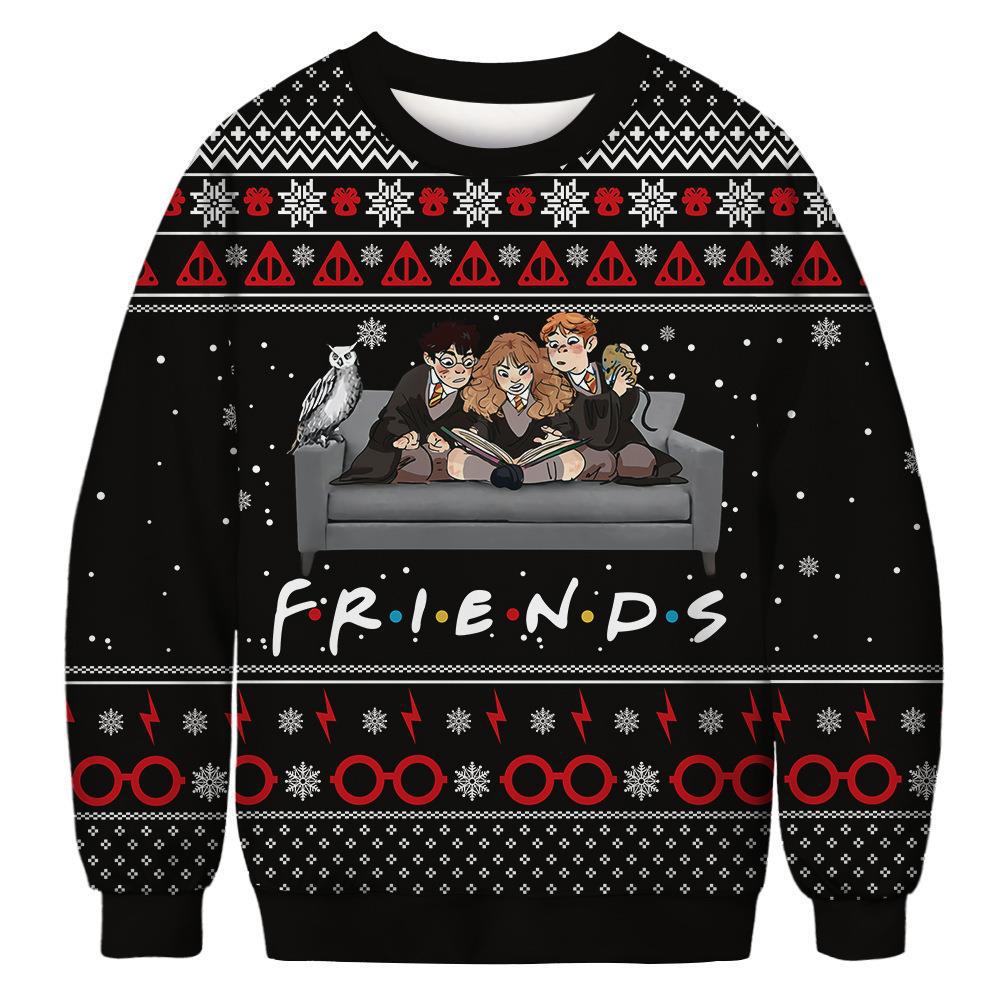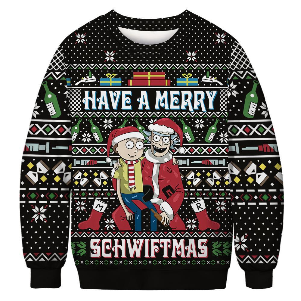 Black Christmas Sweater Christmas round Neck Spring and Autumn Warm Hoodie Casual