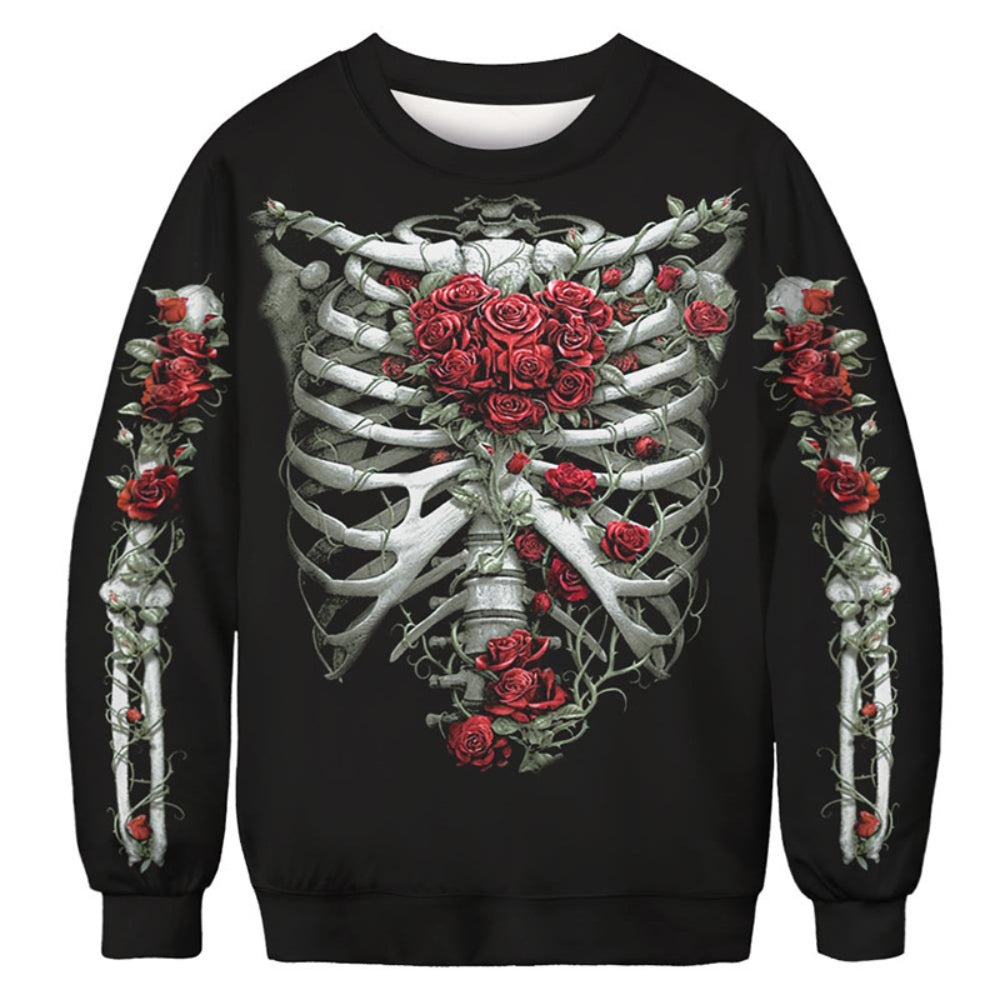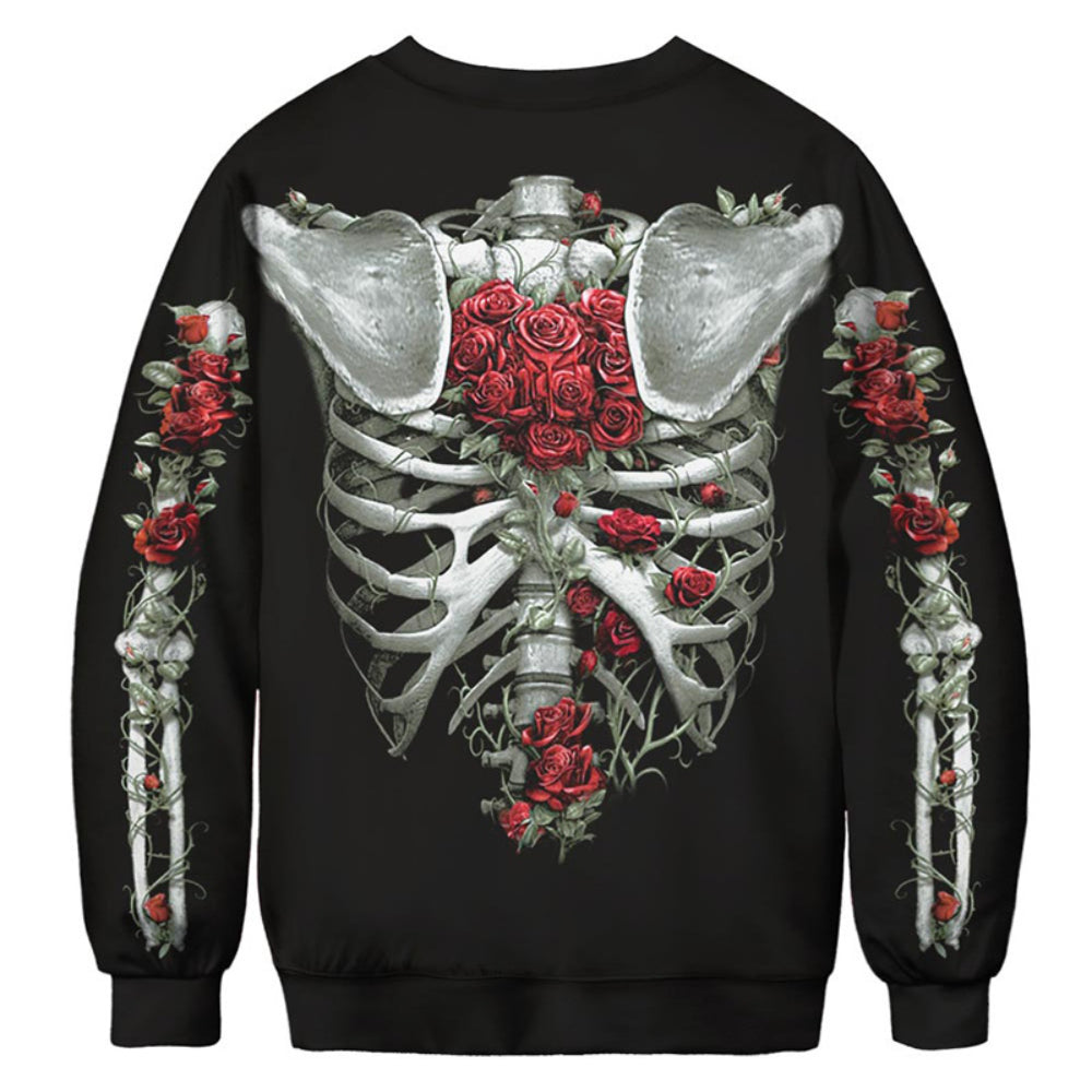 Black Rose Hoodie Skull Rose round Neck Sweater