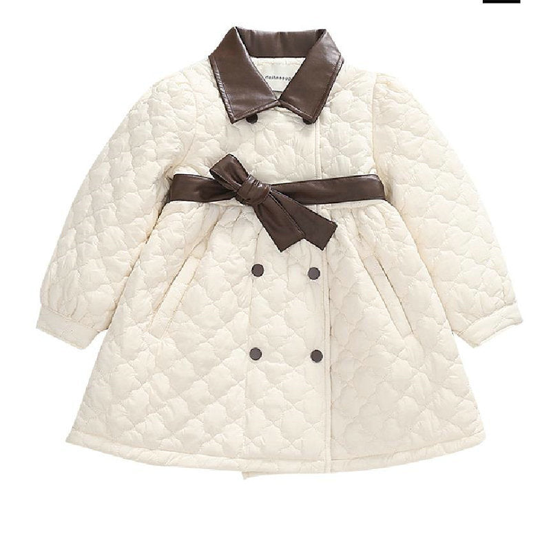 Girl Jacket Girls Padded Cotton Clothes Pu Leather Stitching Quilted