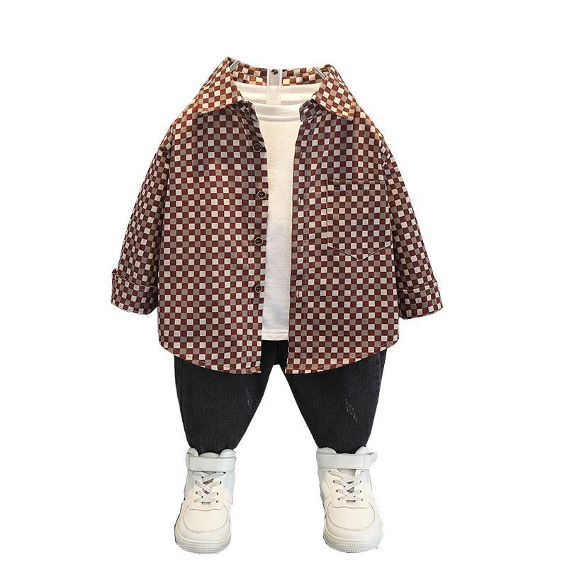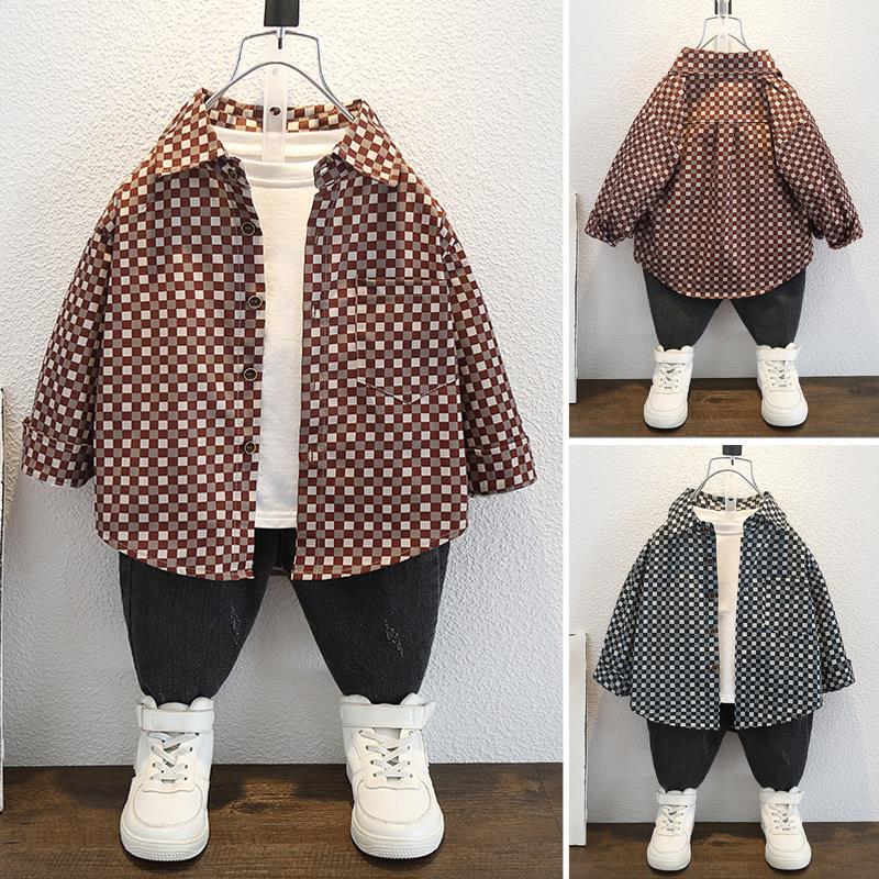 Toddler Boys Sweater Boys' Spring And Autumn Small Plaid Shirt