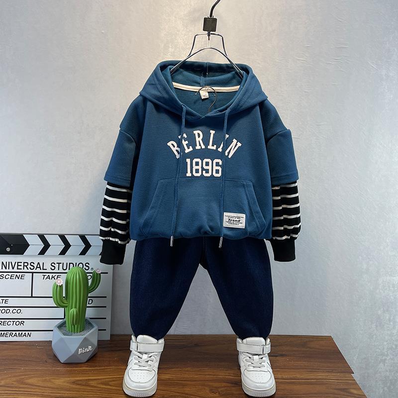 Toddler Boys Sweater Boy's Hoody Spring and Autumn Clothes Children Fake Two Pieces