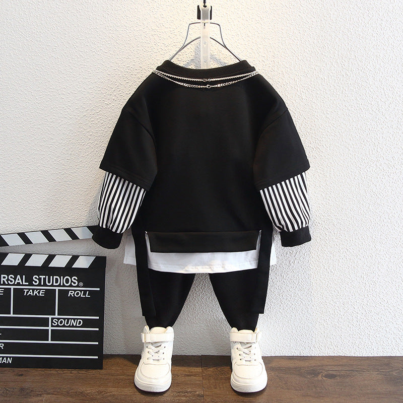 Toddler Boys Sweater Boys' Suit Spring Wear Hoodie Two-Piece Set