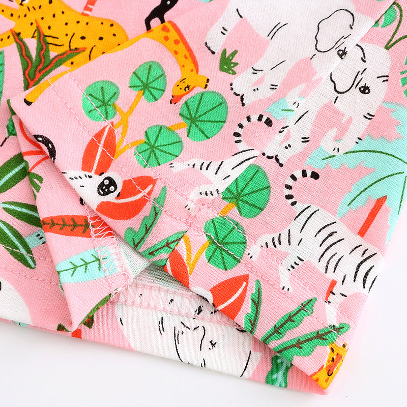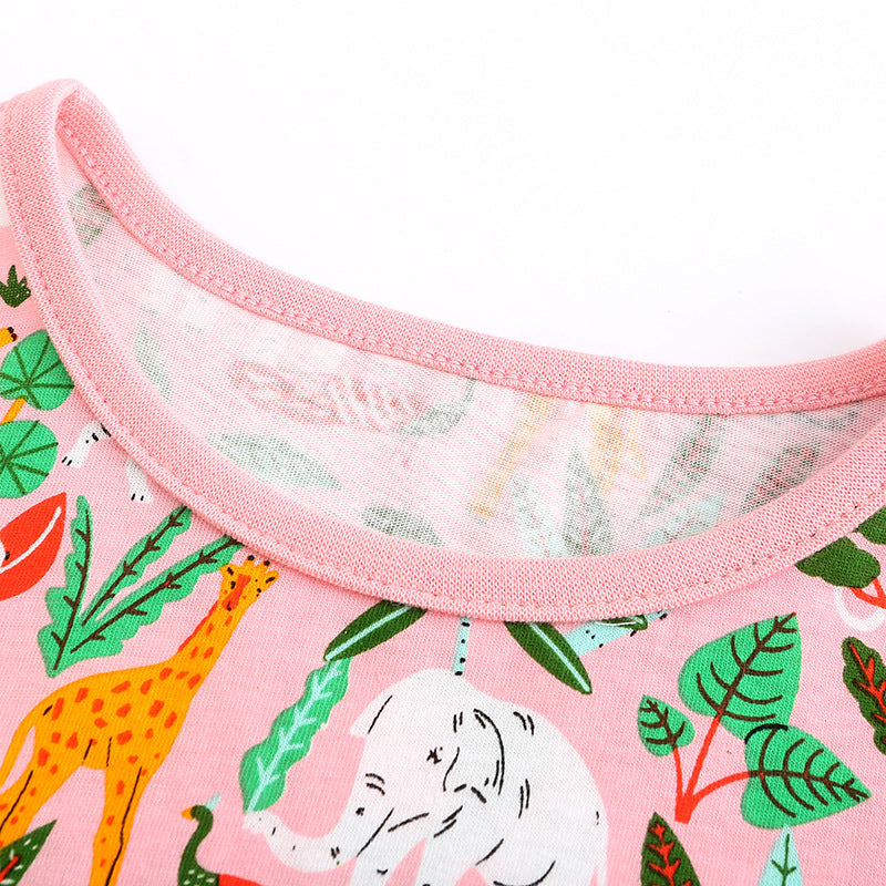 Girl Dress Girls' Summer Knitted Cotton Cartoon Printed Short Sleeve Princess Dress round Neck Dress