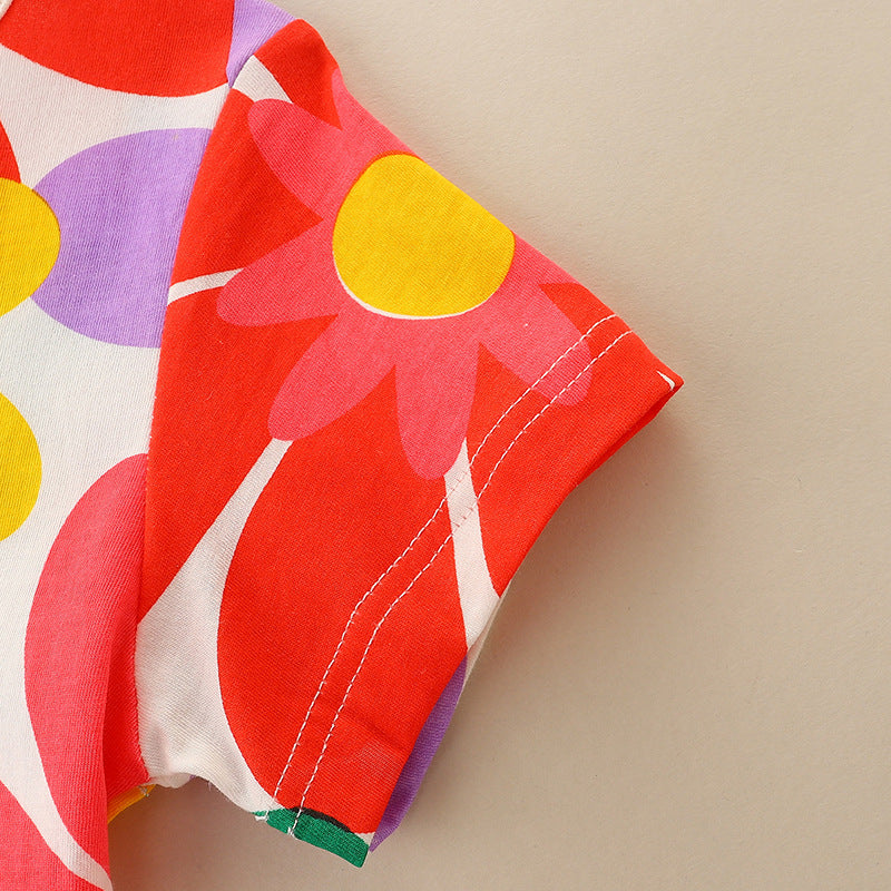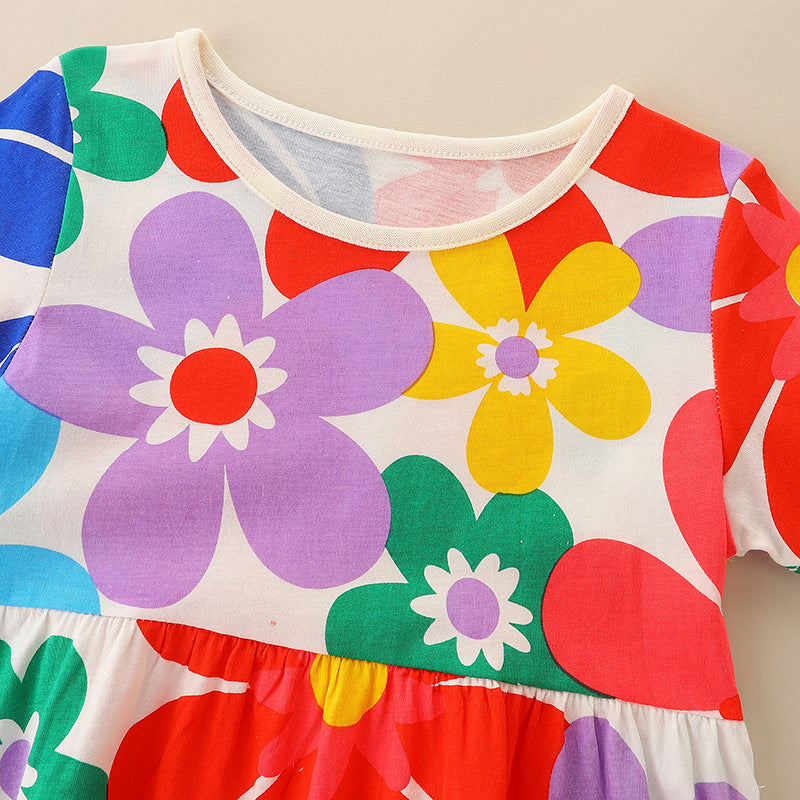 Girl Dress Summer Cartoon Printed Princess Dress Pullover round Neck