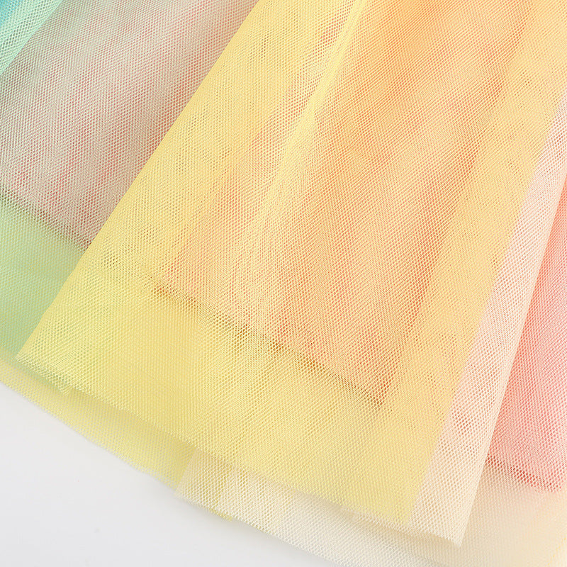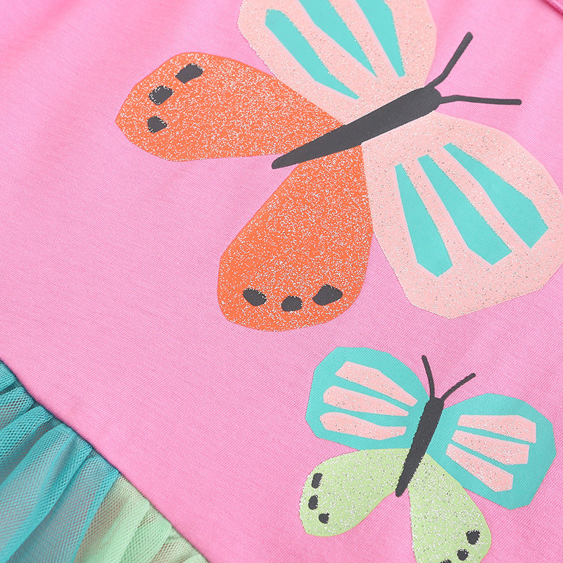 Girl Dress Children's Gauze Dress Summer Girls' Dress Cartoon Printed Fashion Flower Children's Short Sleeve