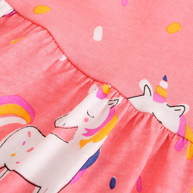 Girl Dress Girls' Short-Sleeved Dress Summer Cartoon Printed Knitted Cotton round Neck Children Shirt