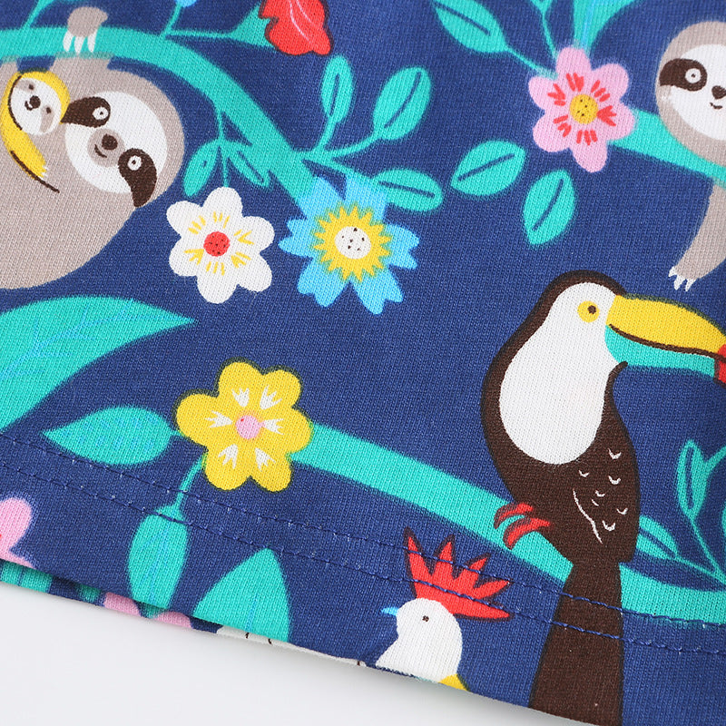 Girl Dress Girls' Summer Knitted Cotton Cartoon Printed Princess Dress Children round Neck